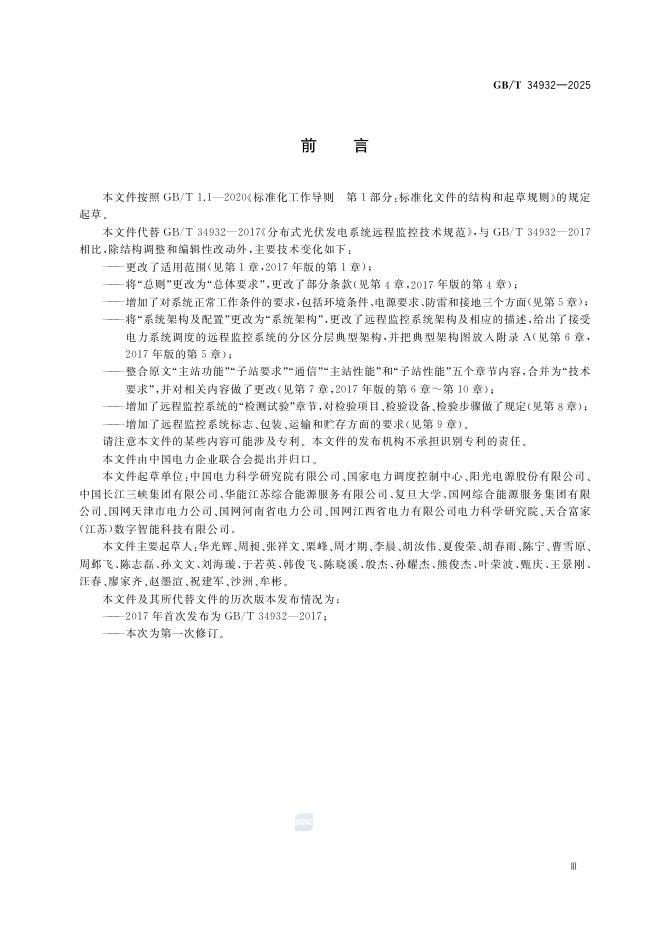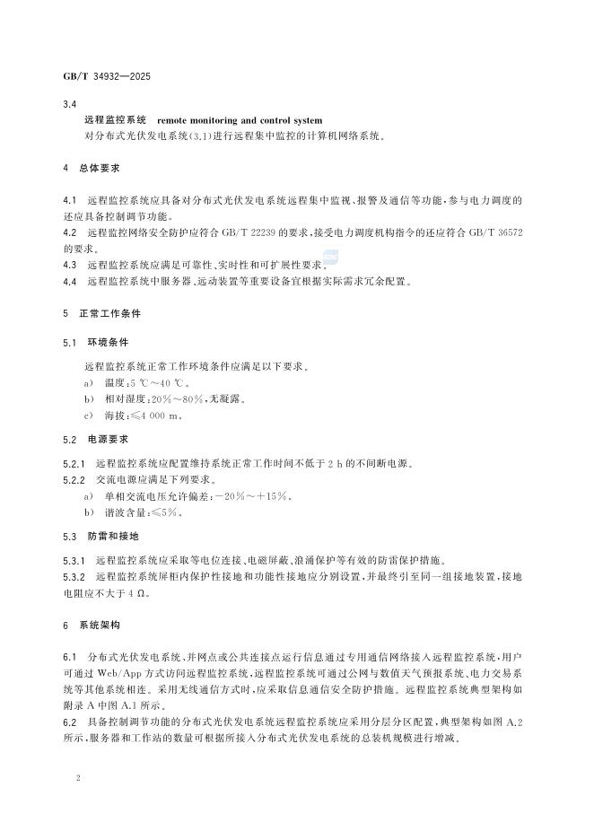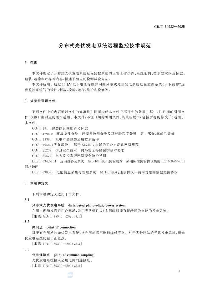 GB/T 34932-2025 分布式光伏发电系统远程监控技术规范