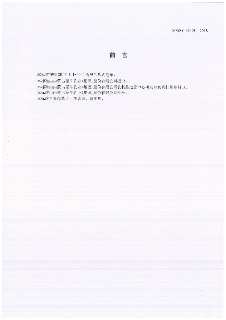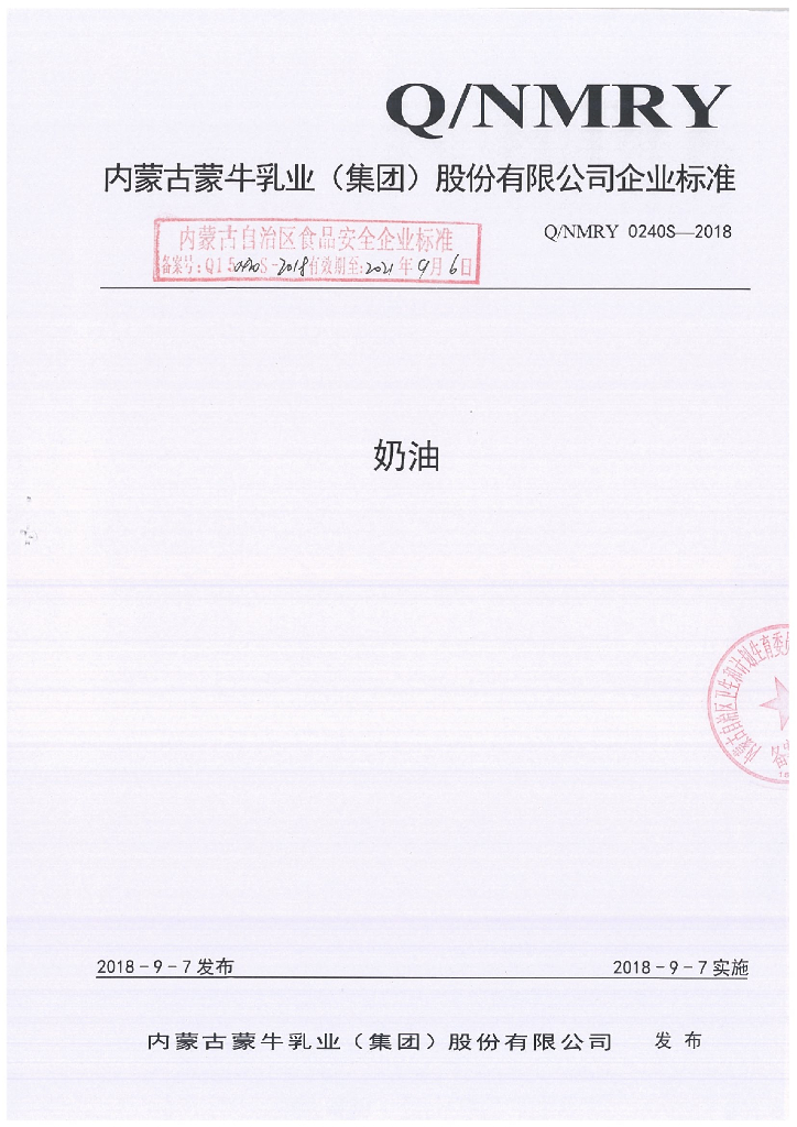 Q/NMRY 0240S-2018 奶油
