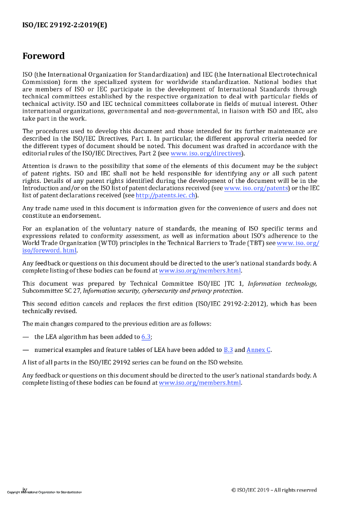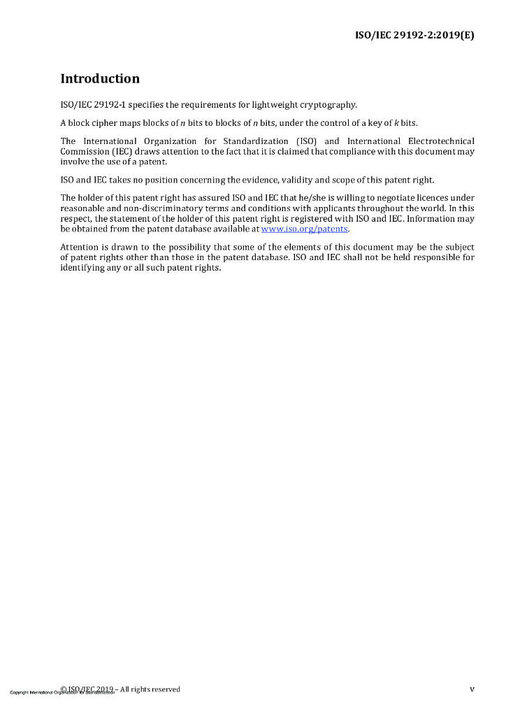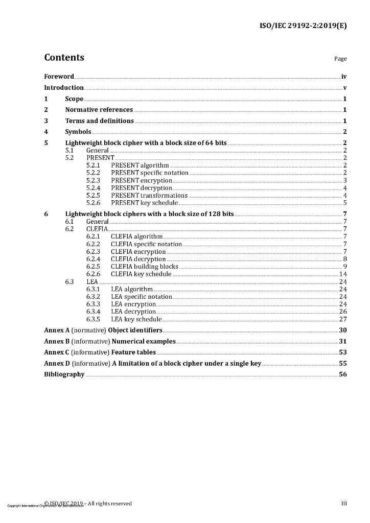 ISO/IEC 29192-2-2019 信息安全 轻量级密码学 第2部分:块密码