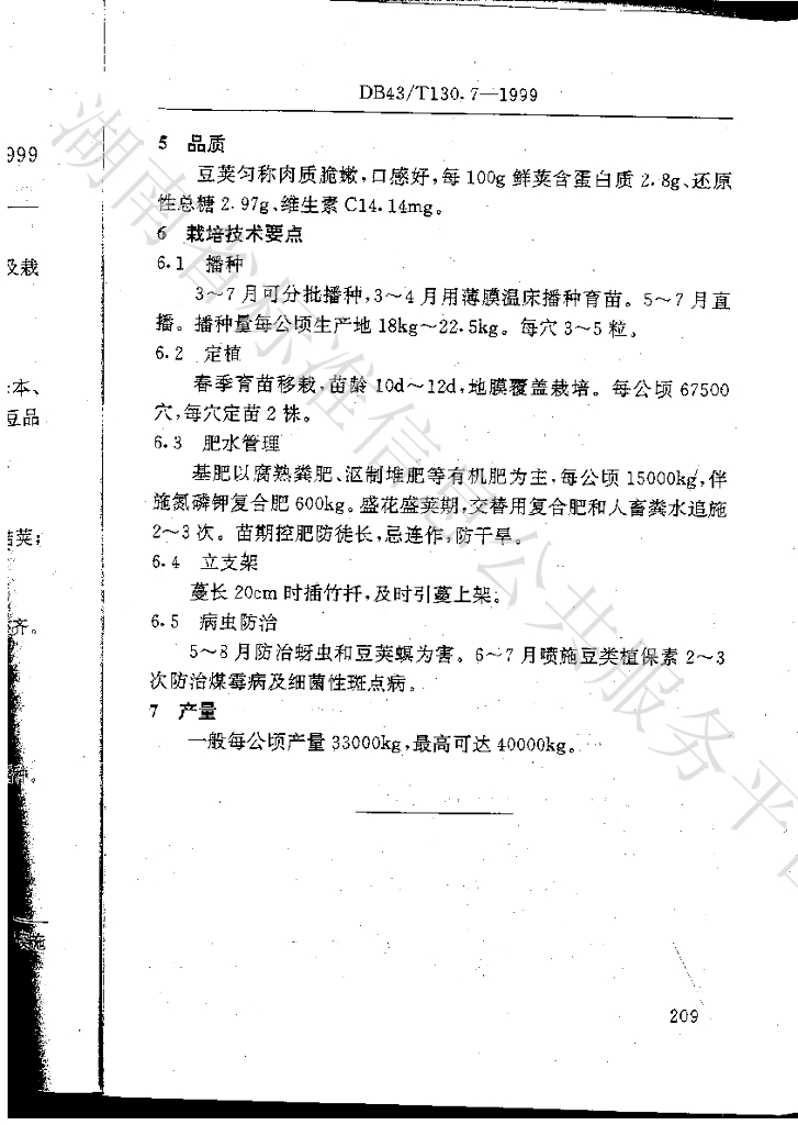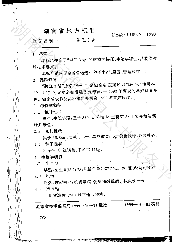 DB43/T 130.7-1999 豇豆品种 湘豇3号