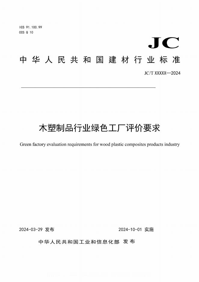 JC/T 2768-2024 木塑制品行业绿色工厂评价要求