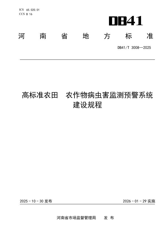 DB41/T 3008-2025 高标准农田 农作物病虫害监测预警系统建设规程
