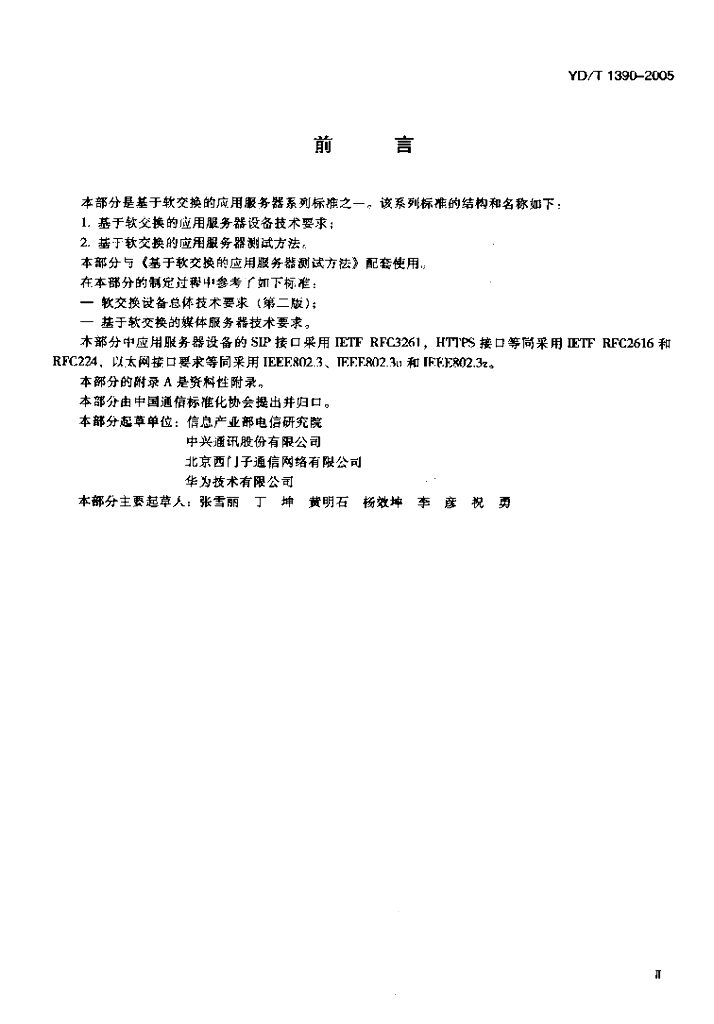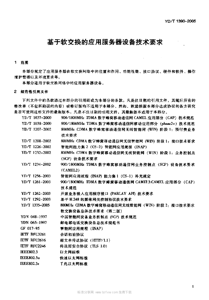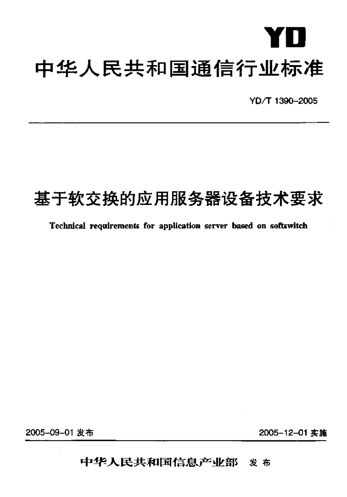 YD/T 1390-2005 基于软交换的应用服务器设备技术要求