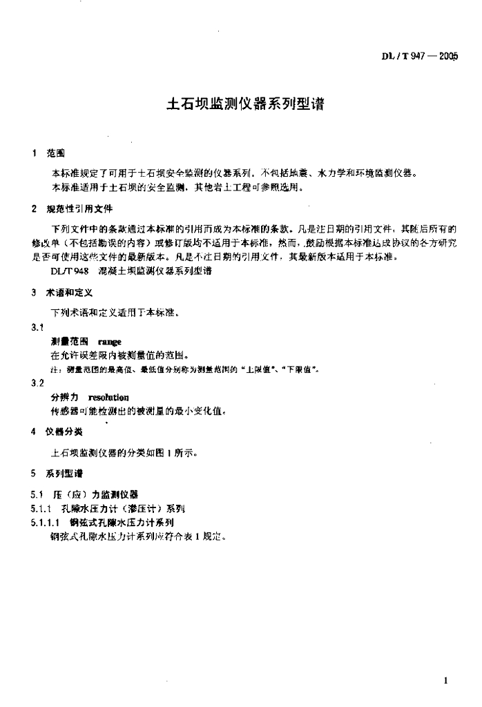 DL/T 947-2005 土石坝监测仪器系列型谱