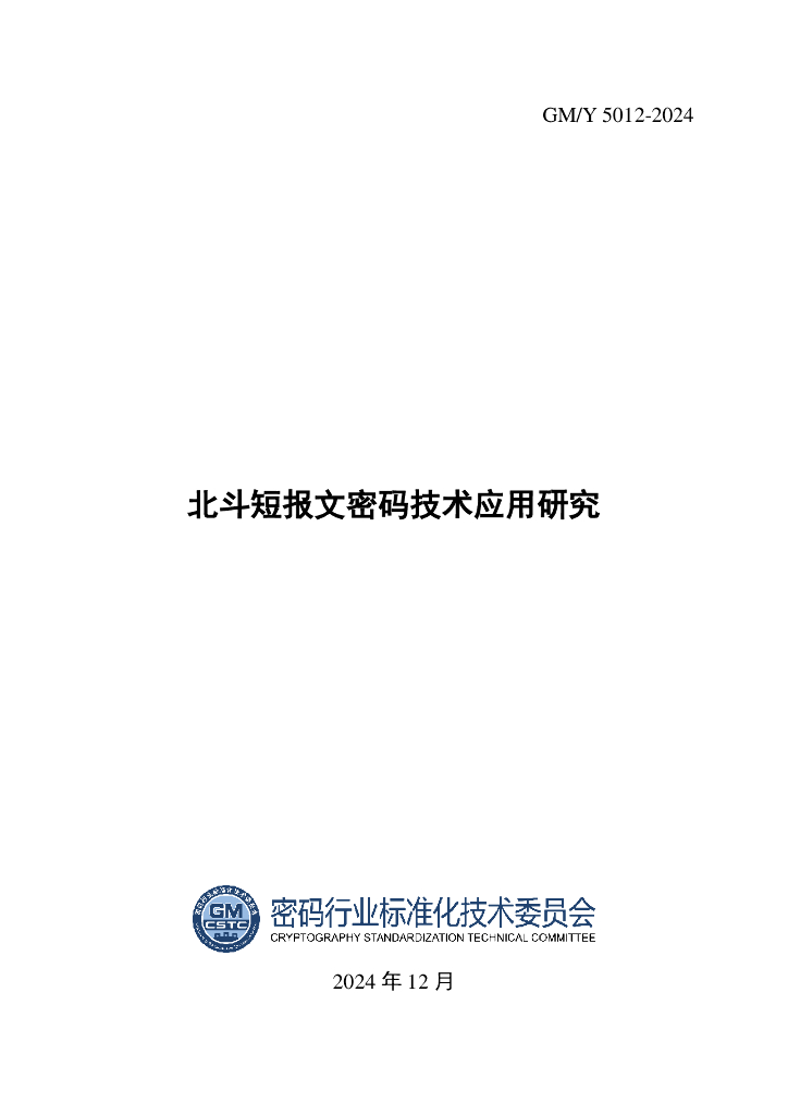 GM/Y 5012-2024 北斗短报文密码技术应用研究