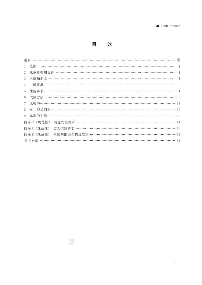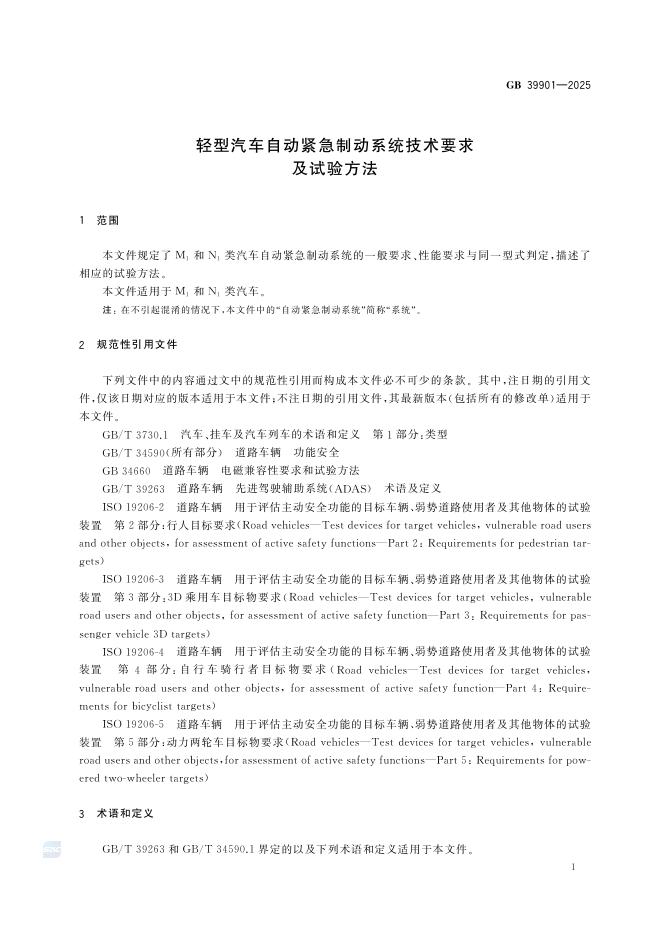 GB 39901-2025 轻型汽车自动紧急制动系统技术要求及试验方法