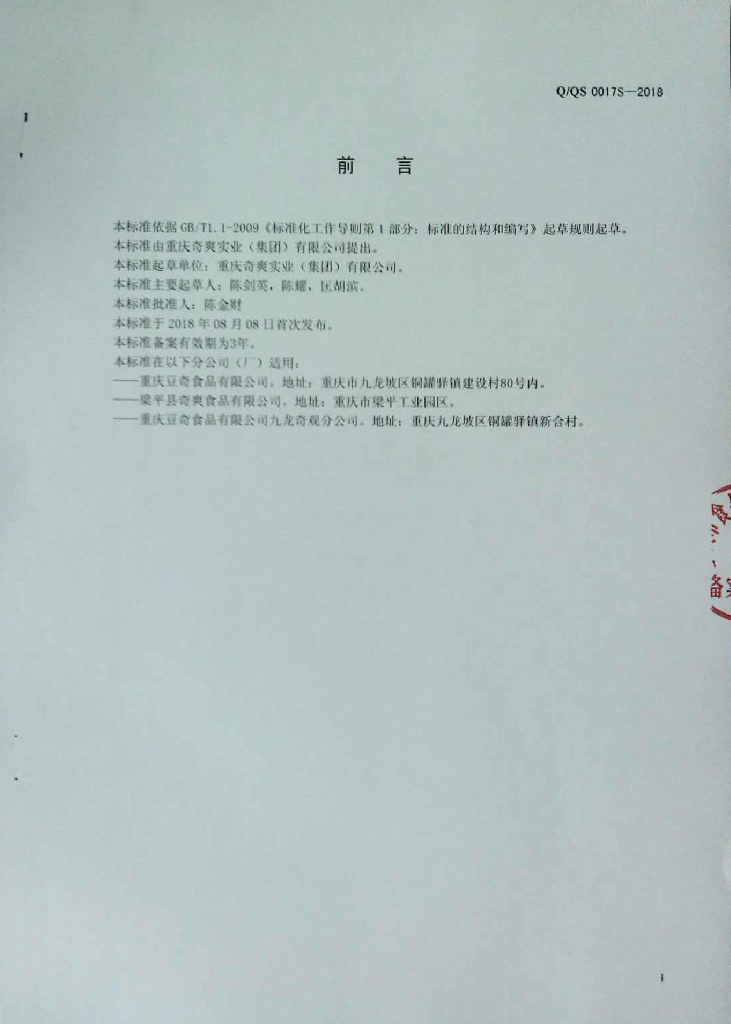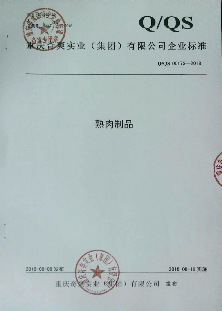 Q/QS 0017S-2018 熟肉制品