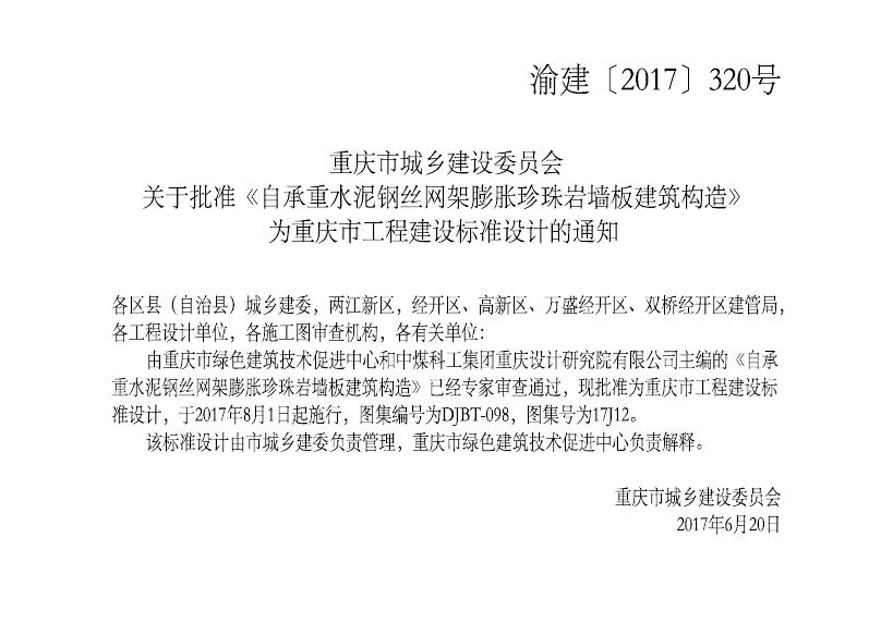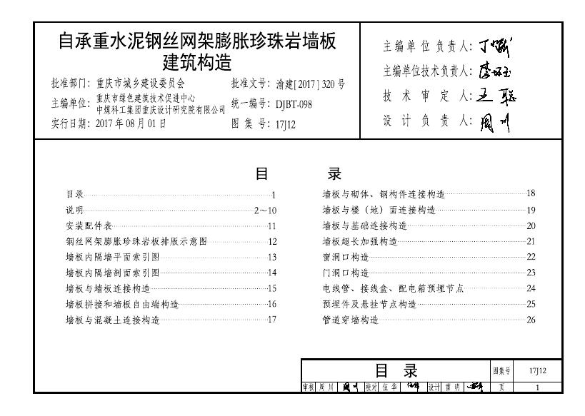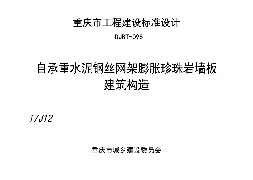 渝17J12 自承重水泥钢丝网架膨胀珍珠岩墙板建筑构造图集(DJBT-098)