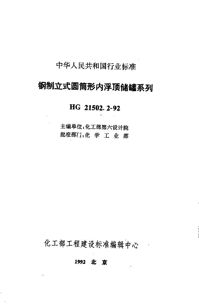 HG 21502.2-1992 钢制立式圆筒形内浮顶储罐系列