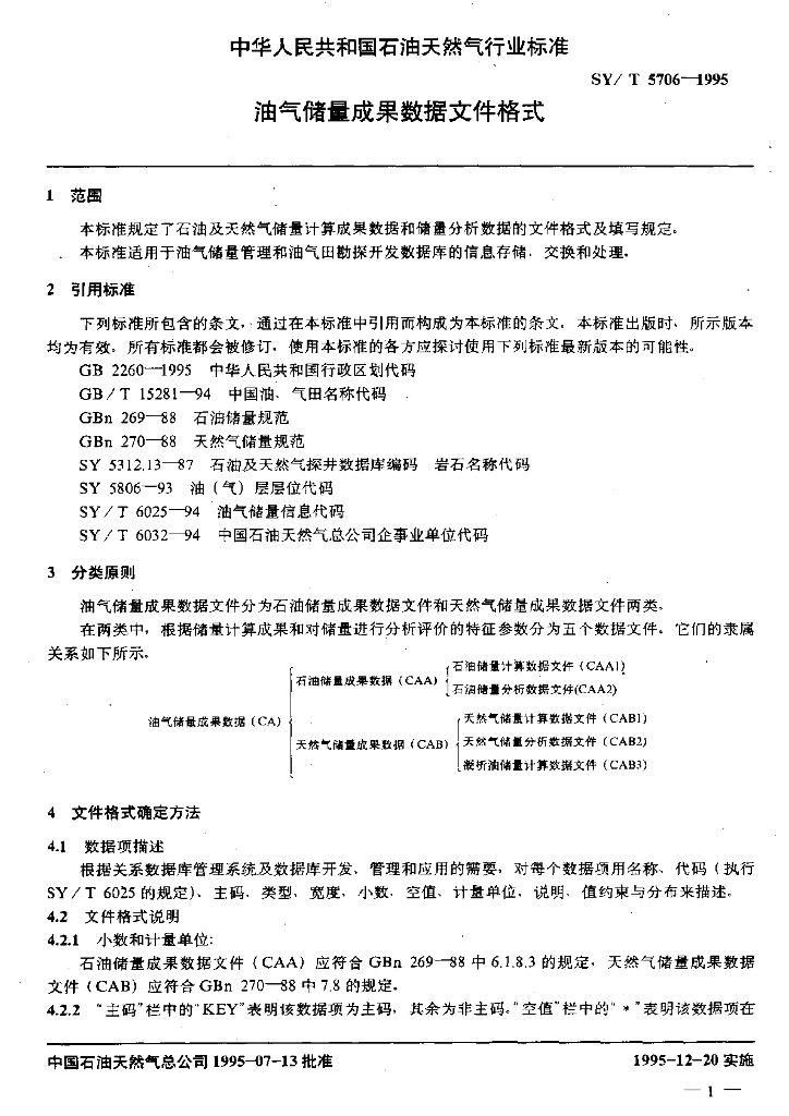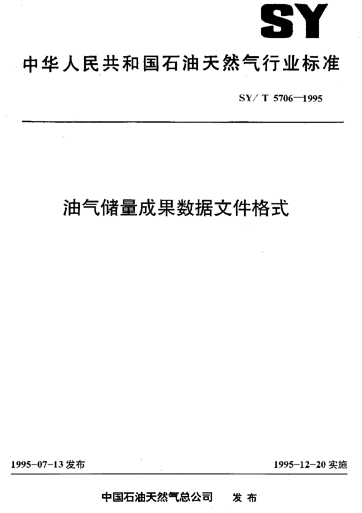 SY/T 5706-1995 油气储量成果数据文件格式