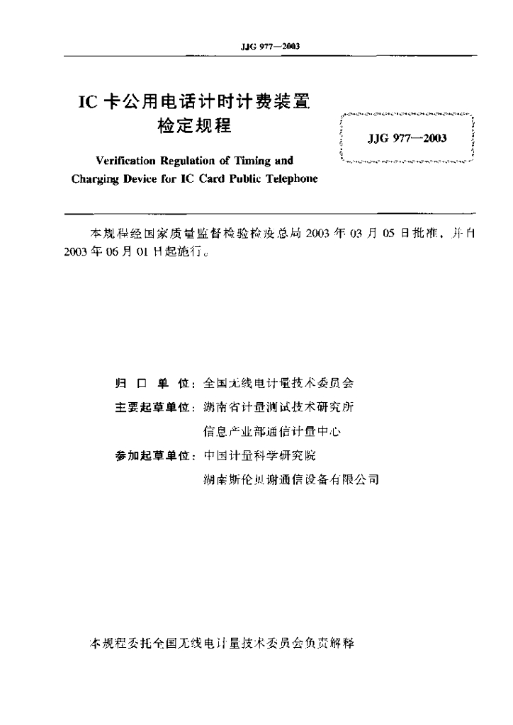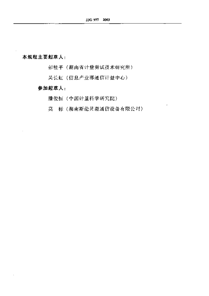 彭桂平(湖南省计量测试技术研究所)、吴长虹(信息产业部通信计量中心)、滕俊恒(中国计量科学研究院)、莫标(湖南斯伦贝谢通信设备有限公司)