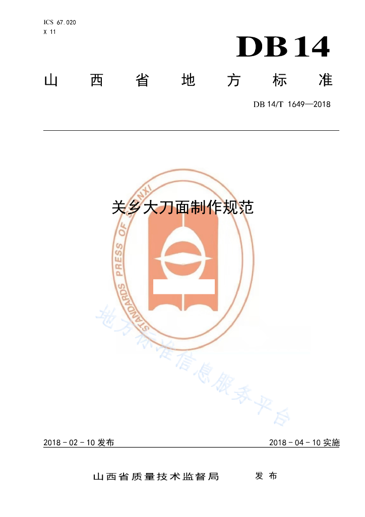 DB14/T 1649-2018 关乡大刀面制作规范