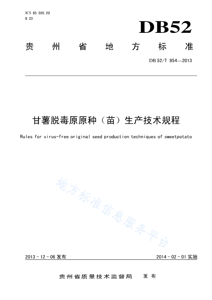 DB52/T 854-2013 甘薯脱毒原原种(苗)生产技术规程