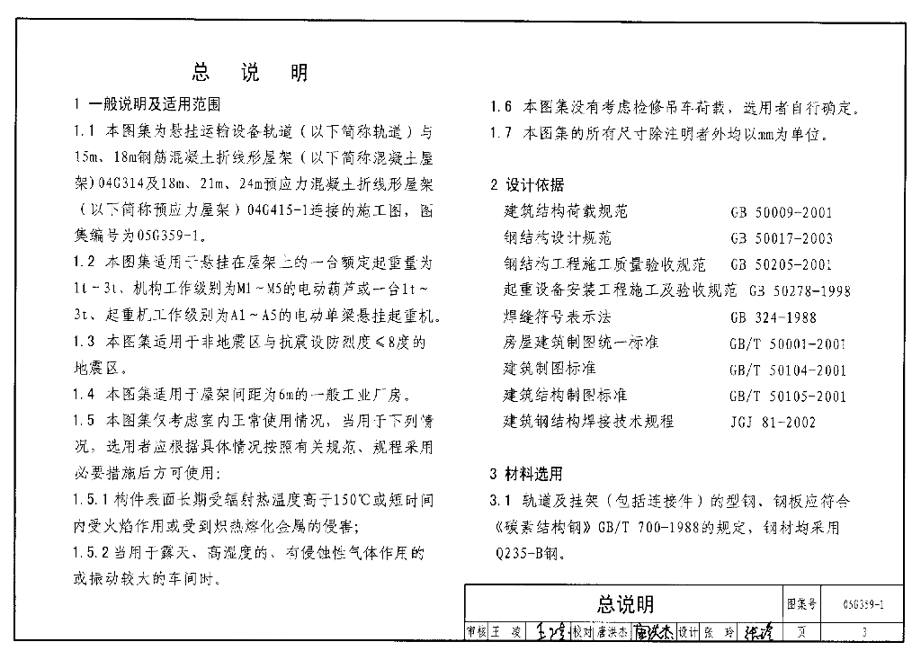 05G359-1 悬挂运输设备轨道(适用于钢筋混凝土和预应力混凝土折线形屋架)图集