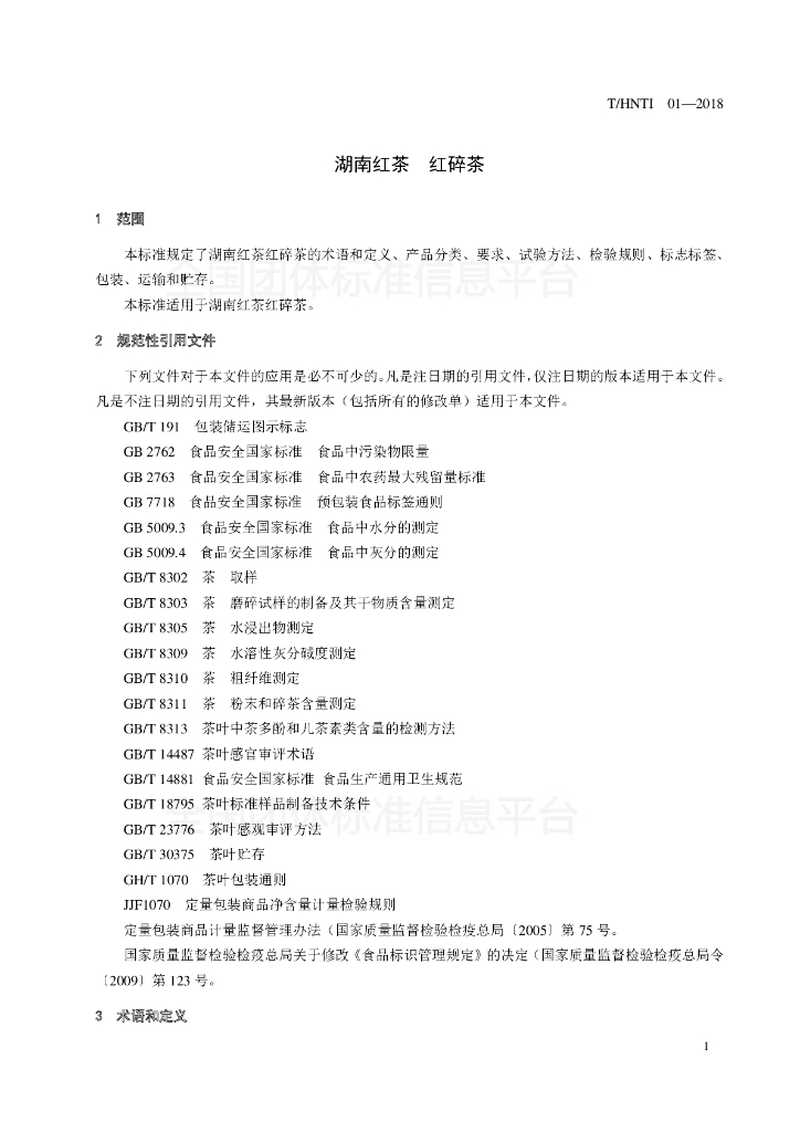 T/HNTI 01-2018 湖南红茶 红碎茶