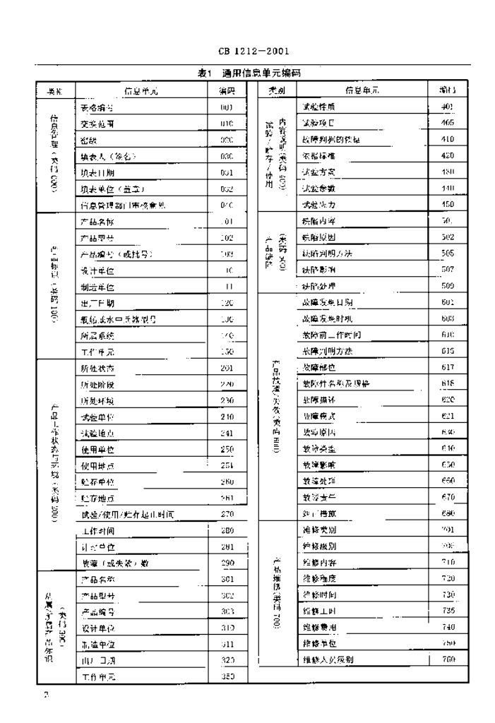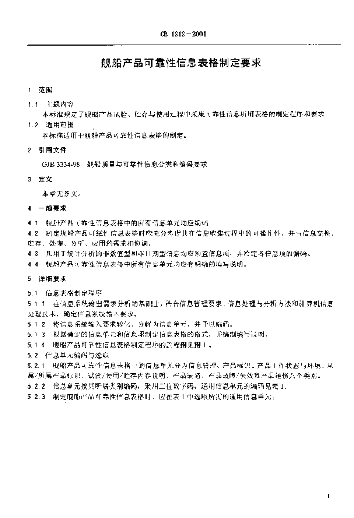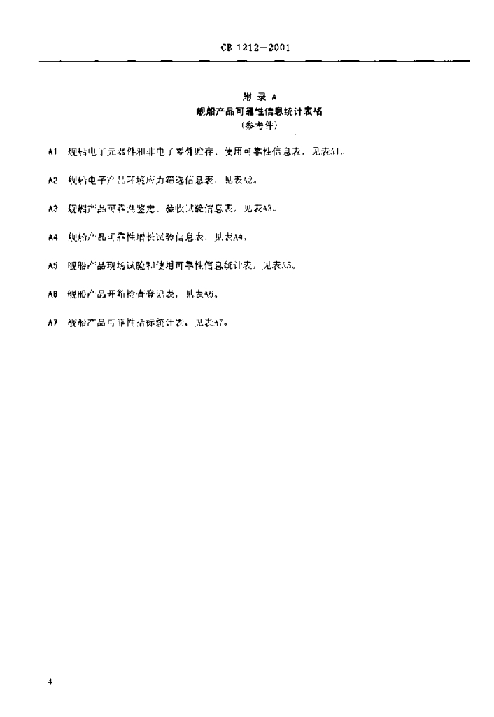 CB 1212-2001 舰船产品可靠性信息表格制定要求