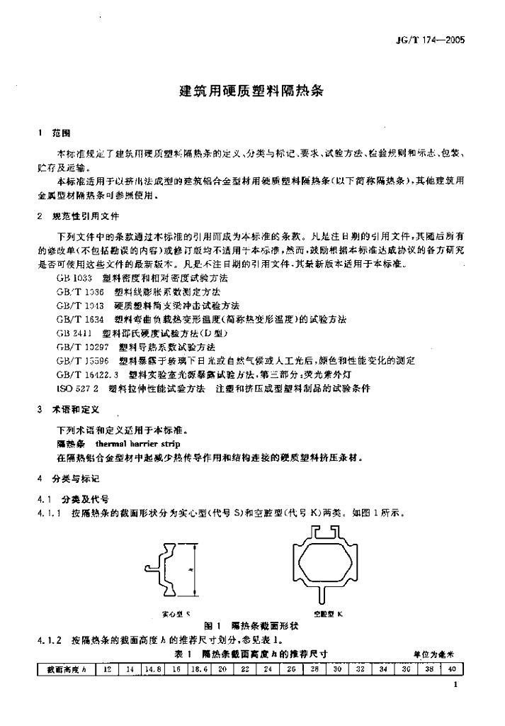 JG/T 174-2005 建筑用硬质塑料隔热条
