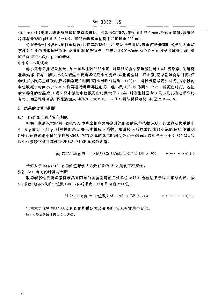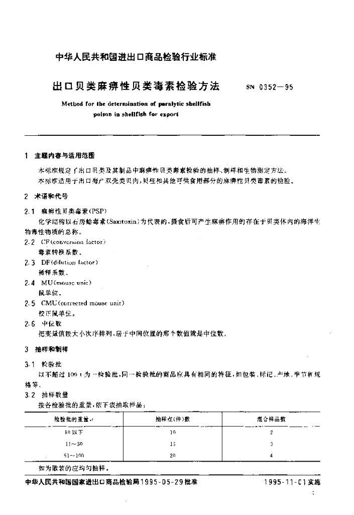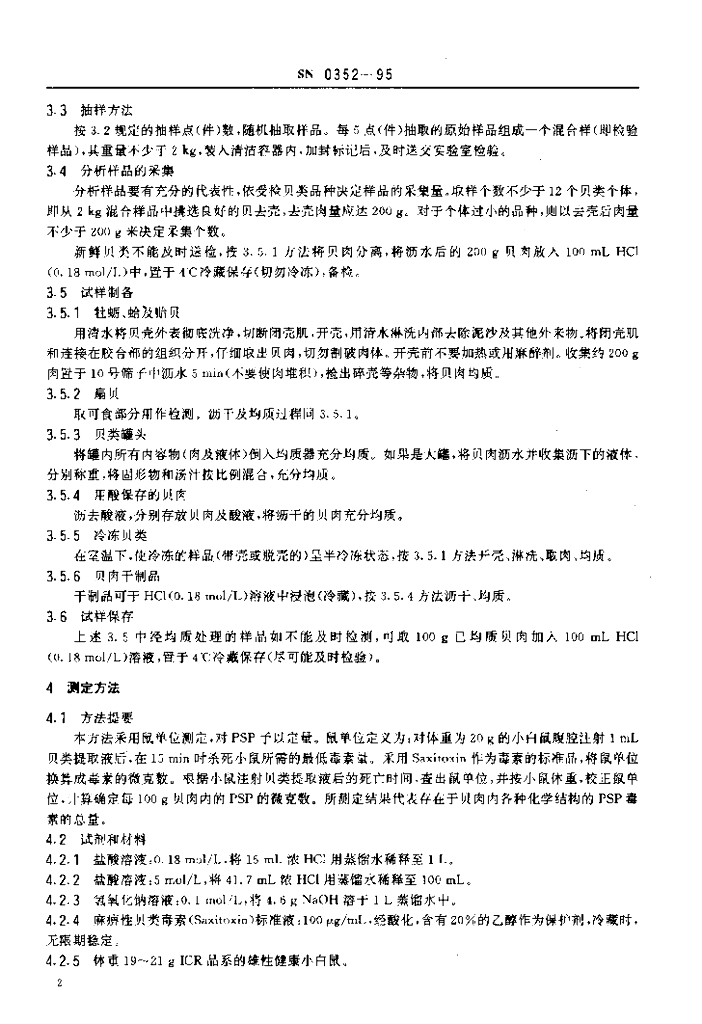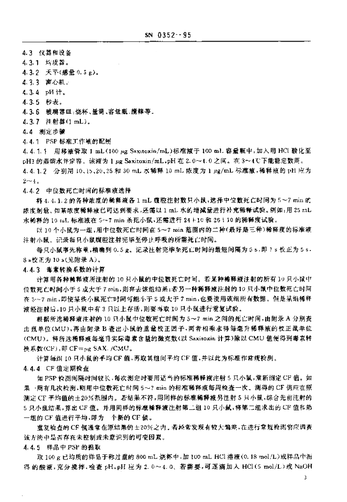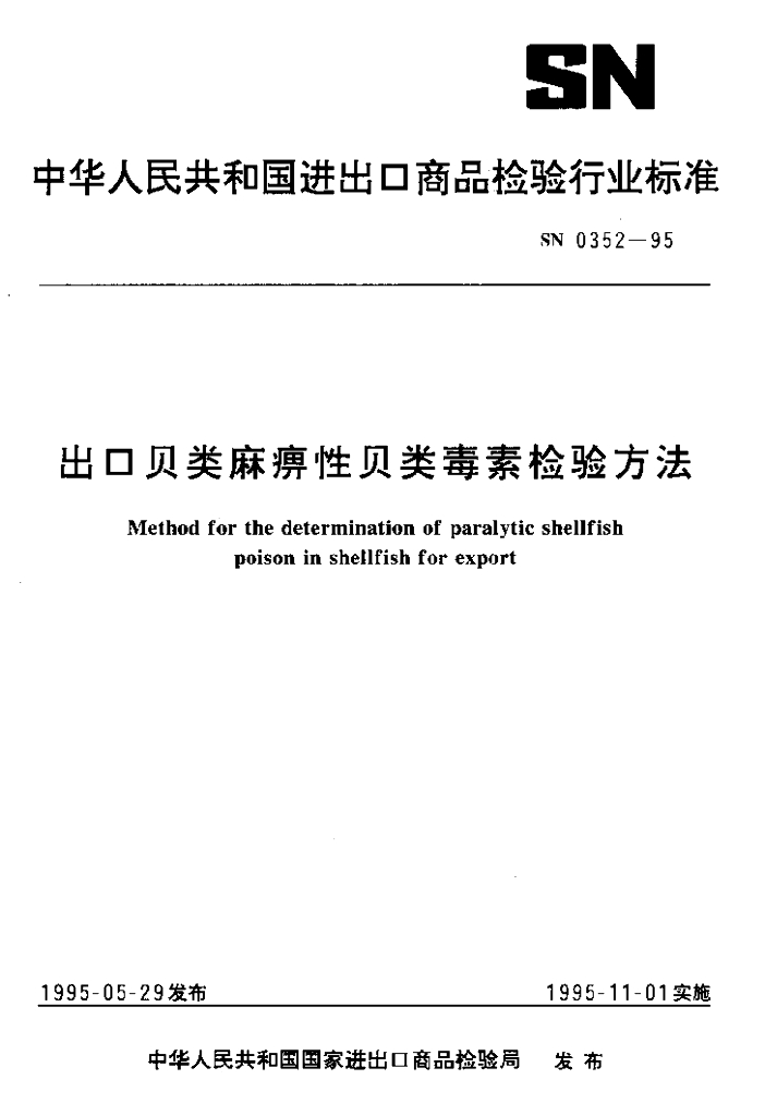 SN 0352-1995 出口贝类麻痹性贝类毒素检验方法