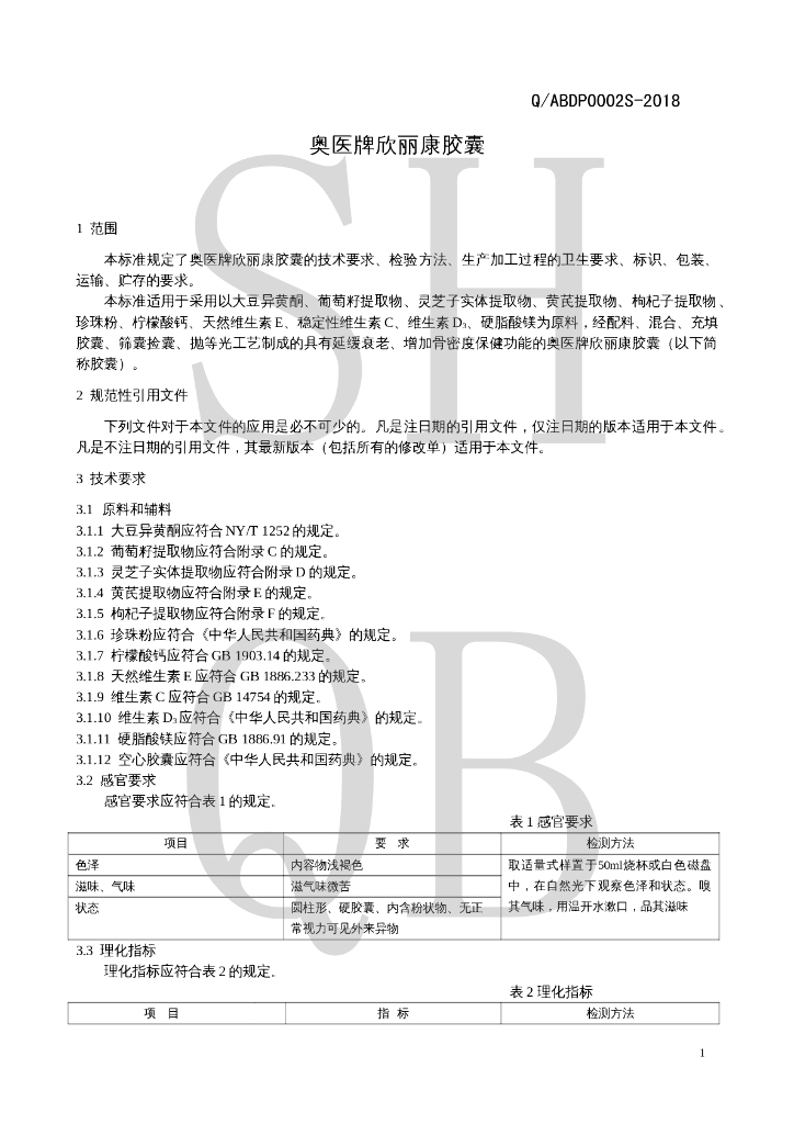 Q/ABDP 0002S-2018 奥医牌欣丽康胶囊