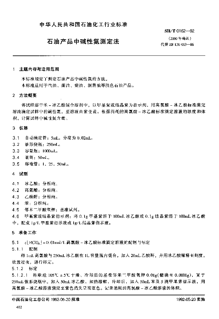 SH/T 0162-1992 石油产品中碱性氮测定法