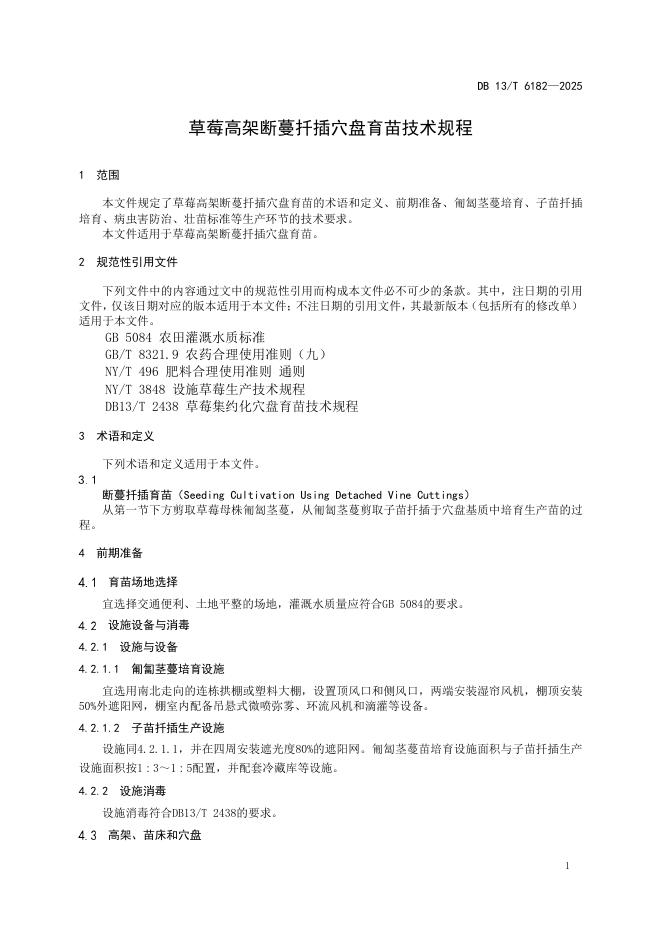 DB13/T 6182-2025 草莓高架断蔓扦插穴盘育苗技术规程
