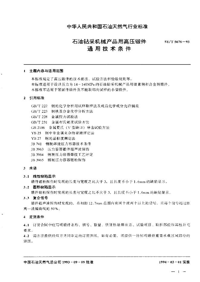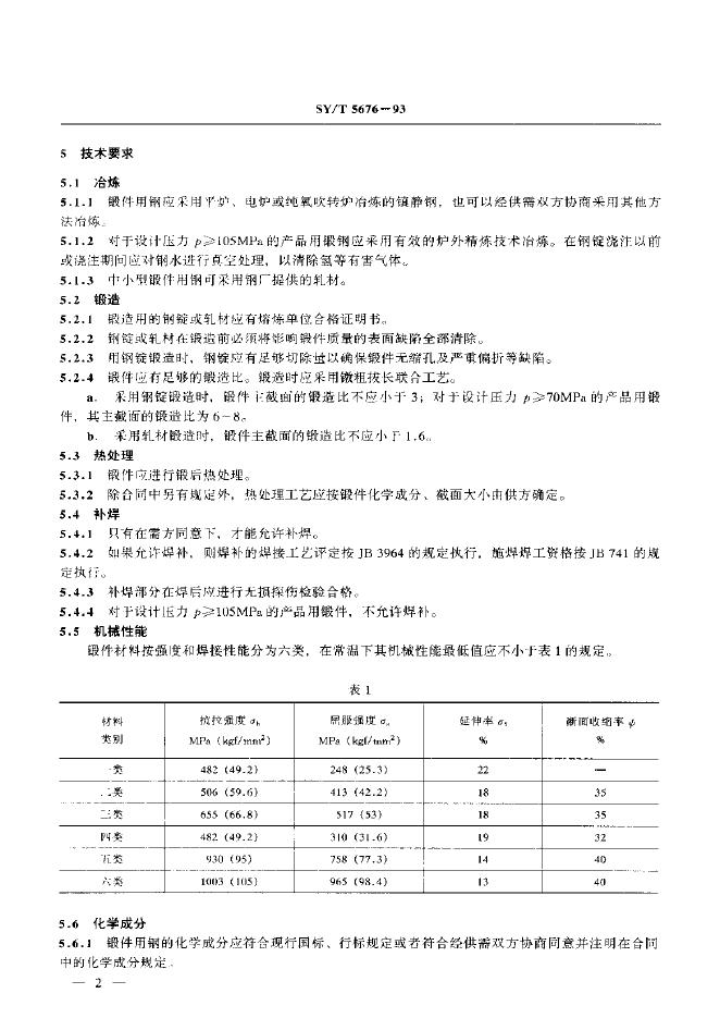 SY/T 5676-1993 石油钻采机械产品用高压锻件通用技术条件