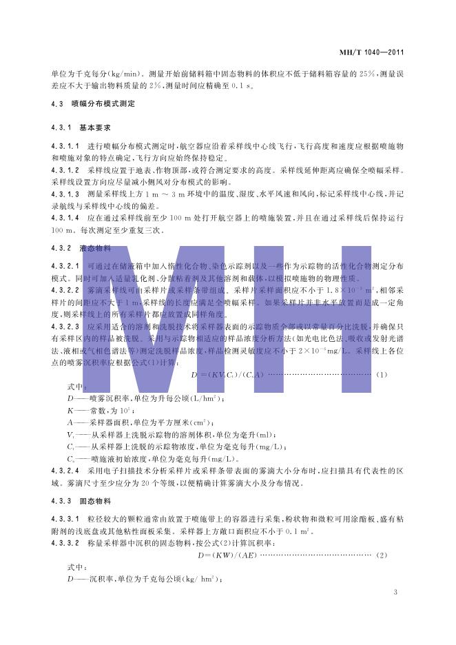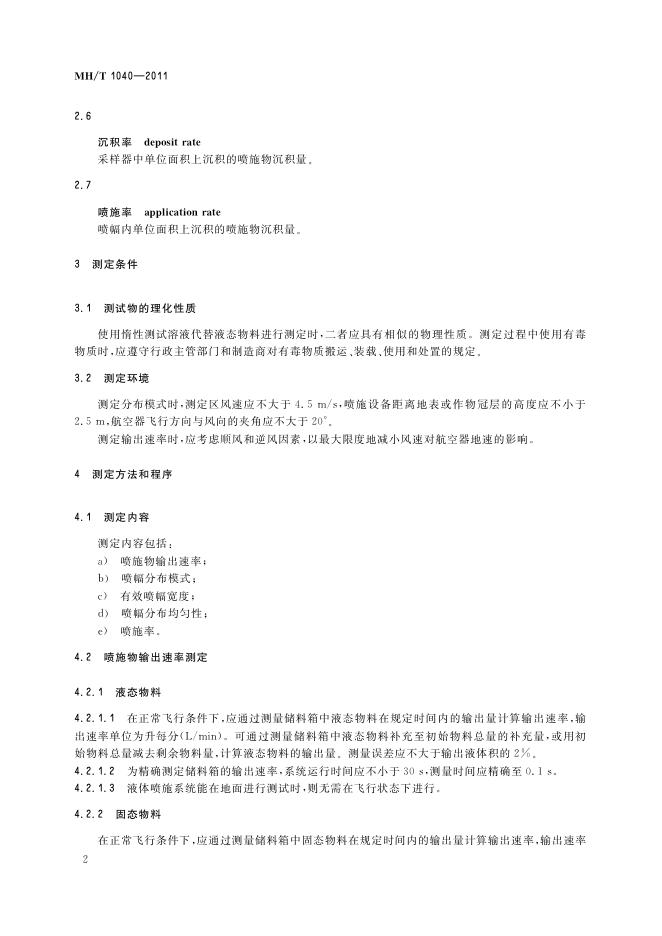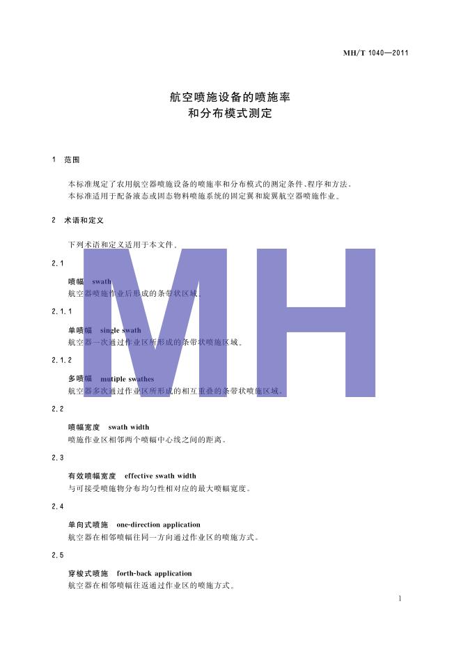 MH/T 1040-2011 航空喷施设备的喷施率和分布模式测定
