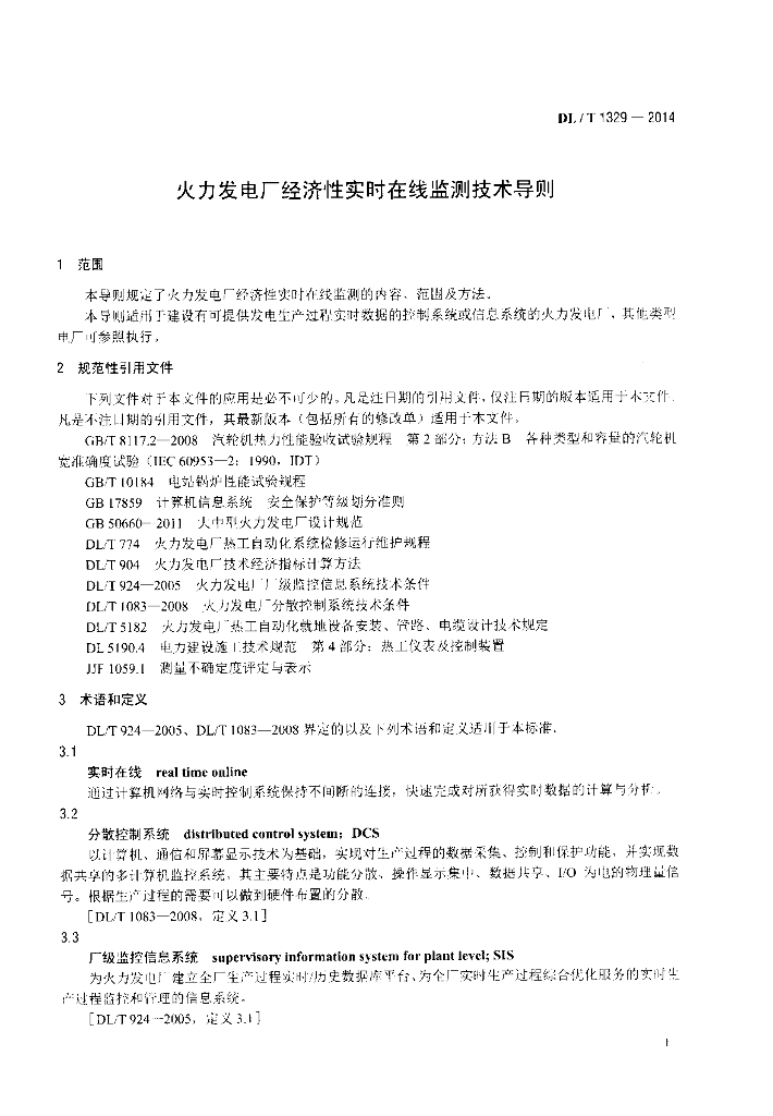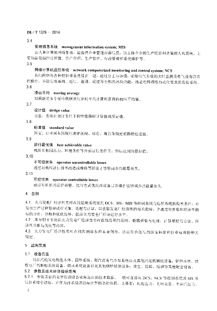DL/T 1329-2014 火力发电厂经济性实时在线监测技术导则