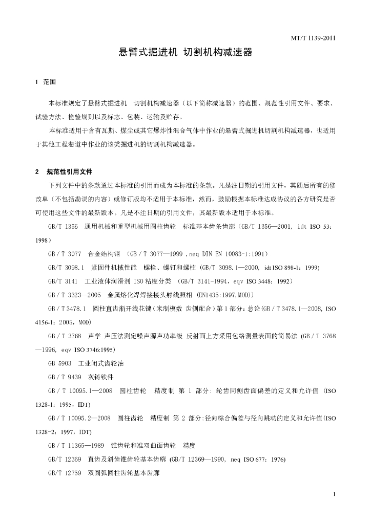 MT/T 1139-2011 悬臂式掘进机 切割机构减速器
