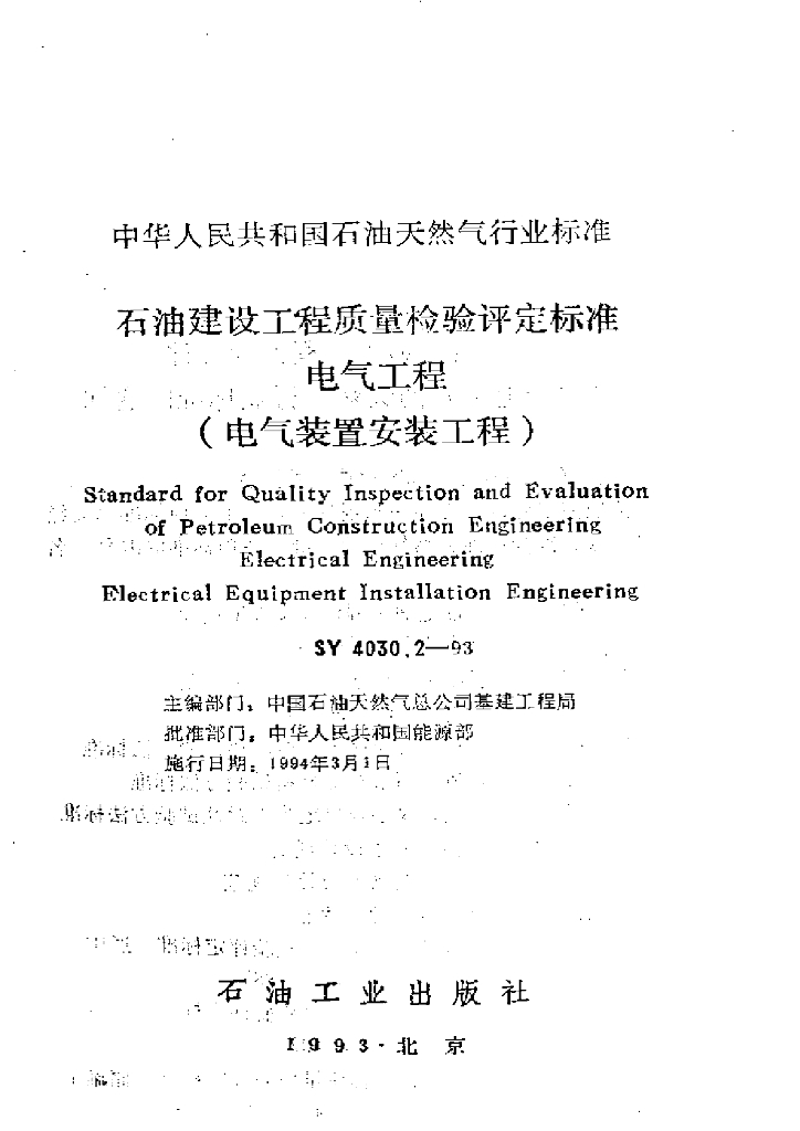 SY 4030.2-1993 石油建设工程质量检验评定标准 电气工程(电气装置安装工程)