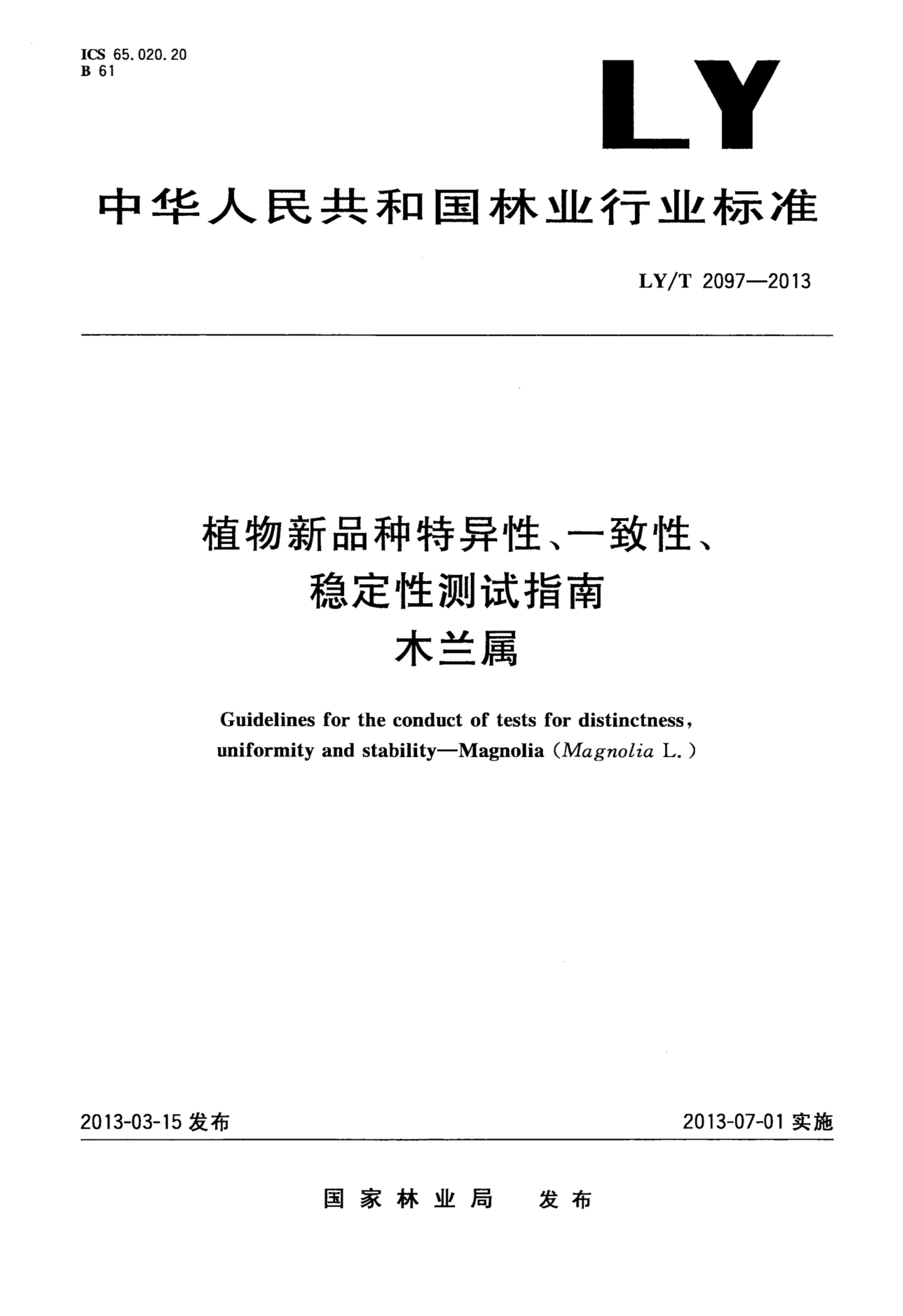 LY/T 2097-2013 植物新品种特异性、一致性、稳定性测试指南 木兰属