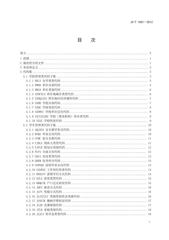 JY/T 1001-2012 教育管理信息 教育管理基础代码