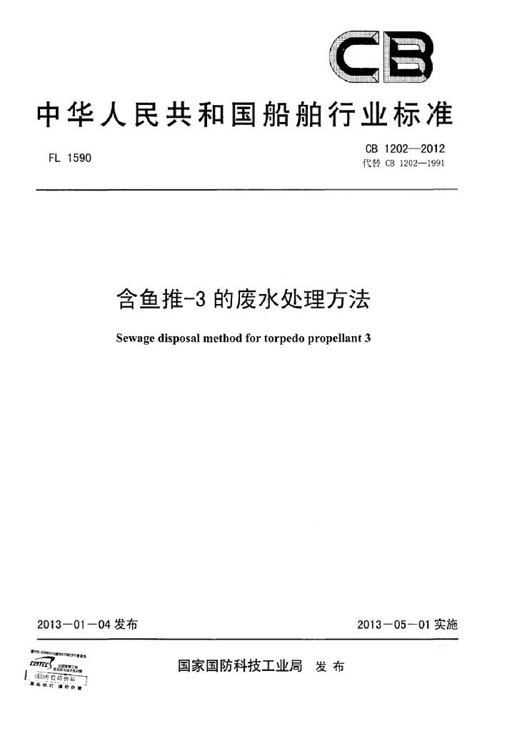 CB 1202-2012 含鱼推-3的废水处理方法