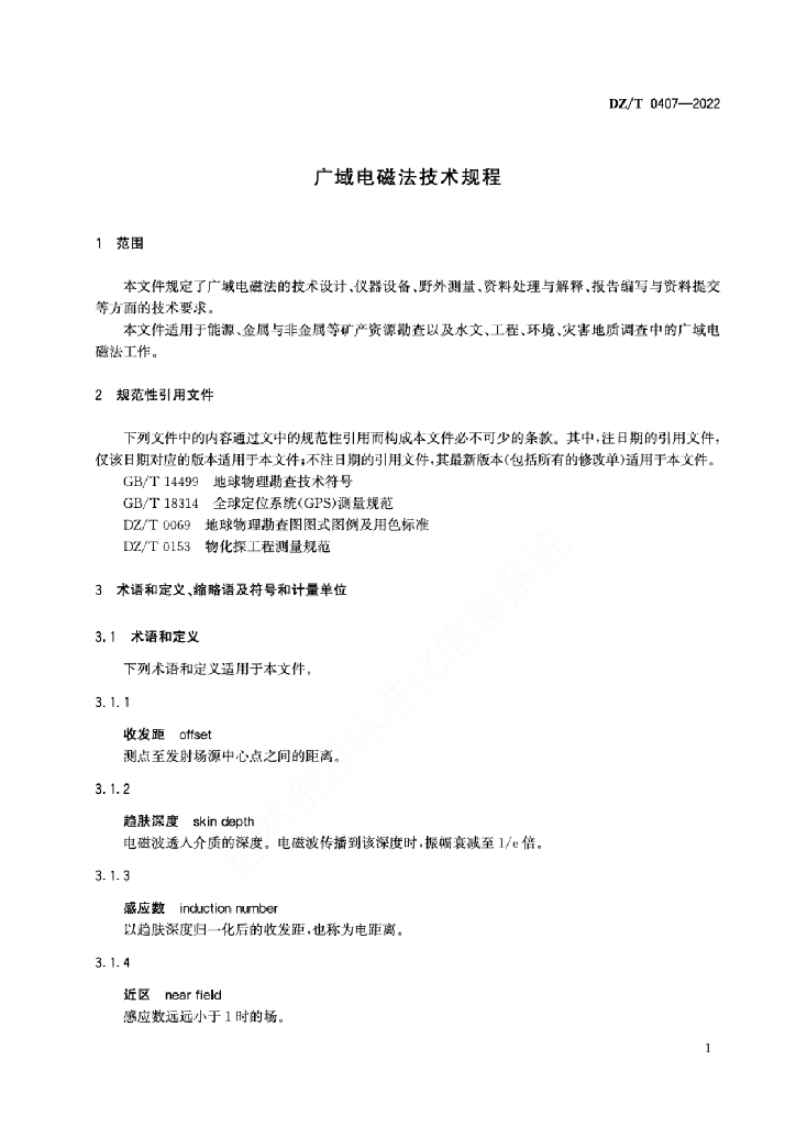 DZ/T 0407-2022 广域电磁法技术规程