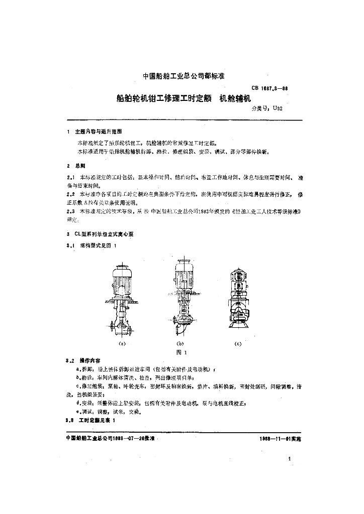 CB 1087.3-1988 船舶轮机钳工修理工时定额 机舱辅机