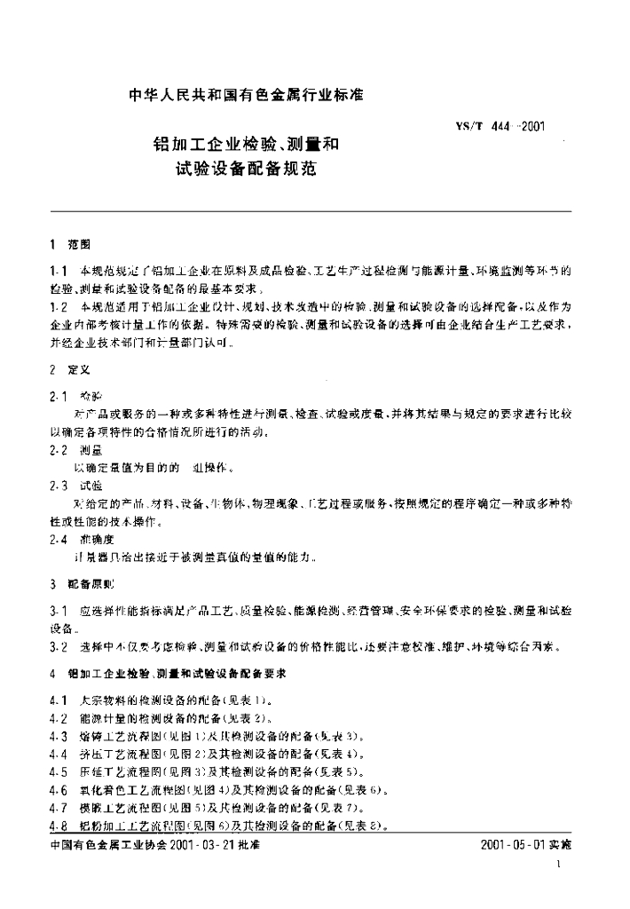 YS/T 444-2001 铝加工企业检验、测量和试验设备配备规范