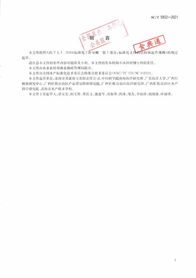 北海市秀派珠宝有限责任公司、中国科学院南海海洋研究所、广东海洋大学、广西红树林研究中心、广西壮族自治区产品质量检验研究院、广西壮族自治区海洋研究所、广西壮族自治区水产科学研究院、北海市水产技术学校