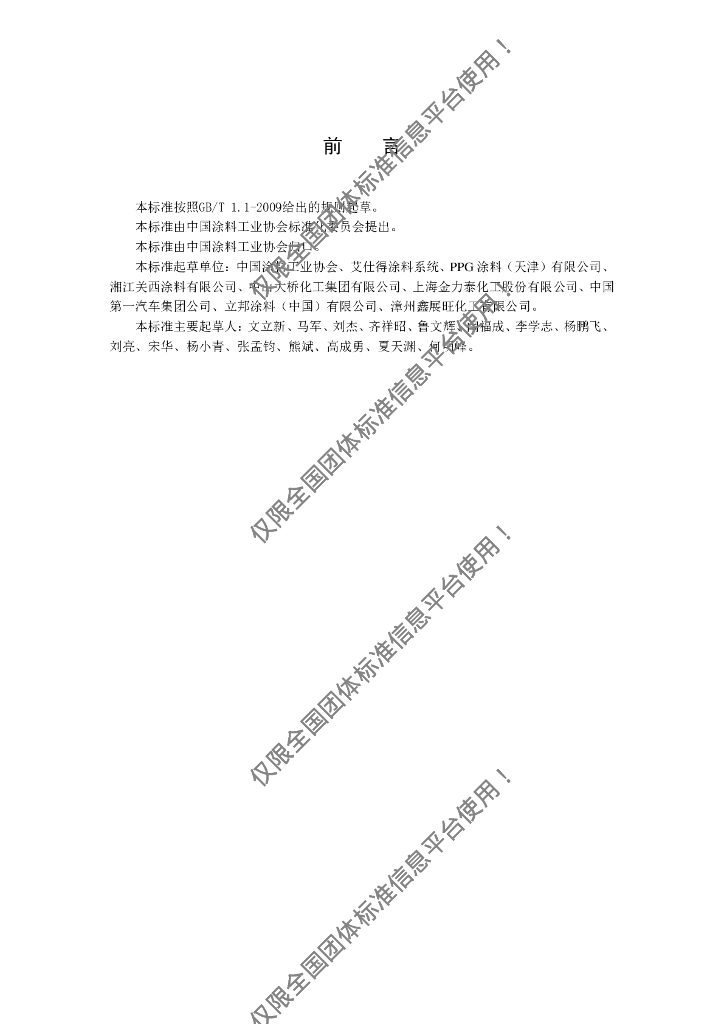 中国涂料工业协会、艾仕得涂料系统、PPG 涂料(天津)有限公司、湘江关西涂料有限公司、中山大桥化工集团有限公司、上海金力泰化工股份有限公司、中国第一汽车集团公司、立邦涂料(中国)有限公司、漳州鑫展旺化工有限公司