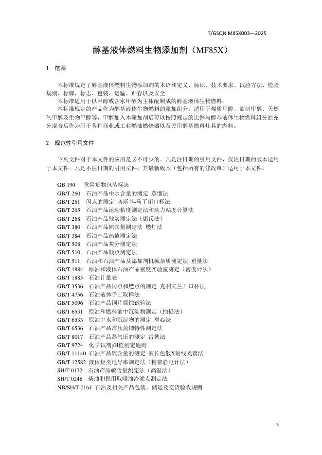 T/GSQN M85X003-2025 醇基液体燃料生物添加剂(MF85X)