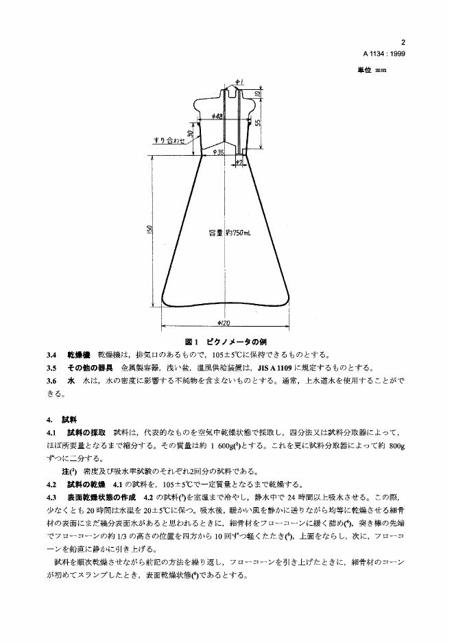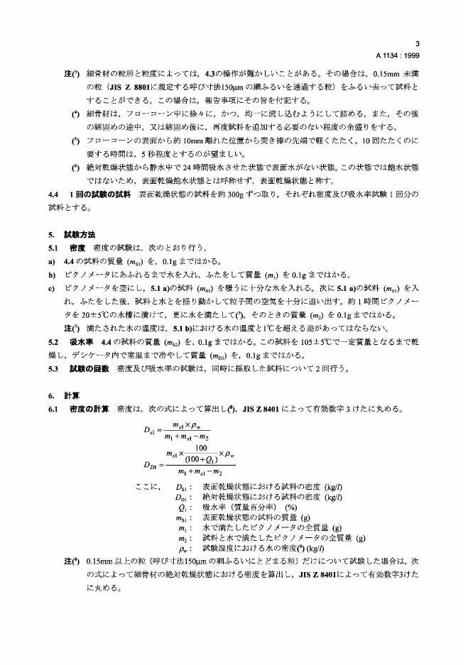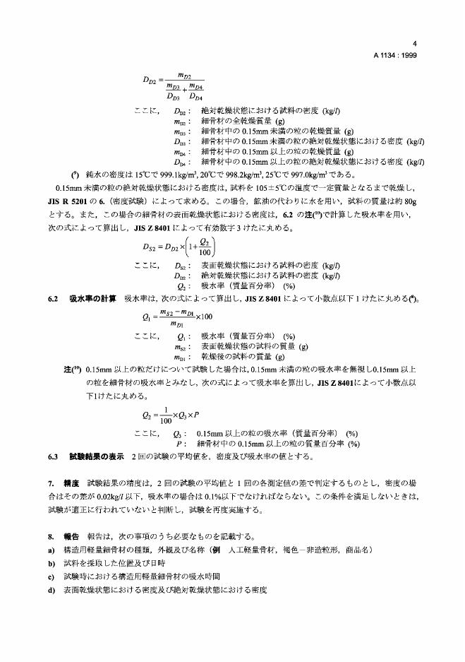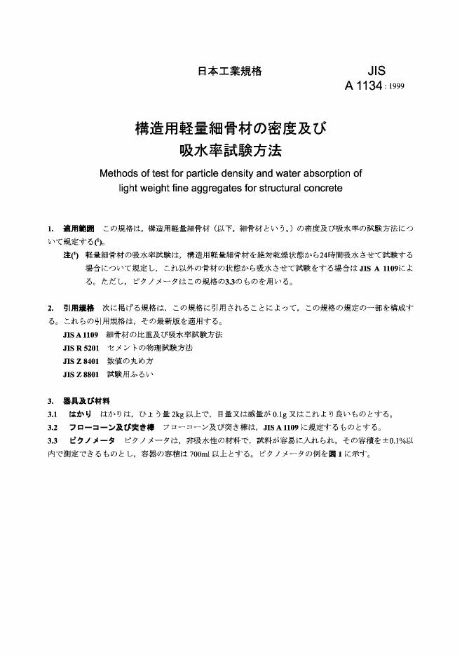 JIS A1134-1999 结构混凝土用轻细集料的吸水率和颗粒密度的试验方法