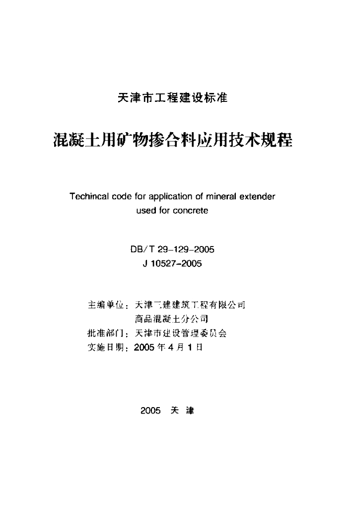DB/T 29-129-2005 混凝土用矿物掺合料应用技术规程