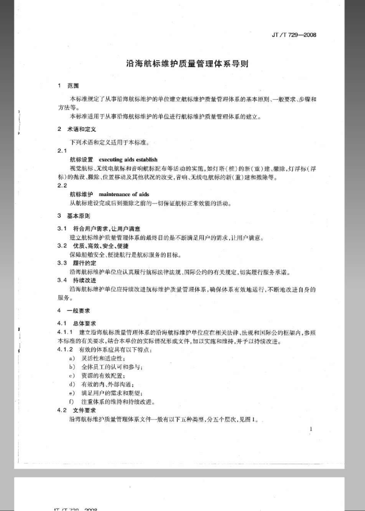 JT/T 729-2008 沿海航标维护质量管理体系导则