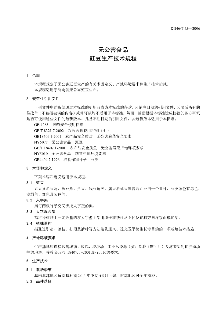DB46/T 55-2006 无公害食品 豇豆生产技术规程
