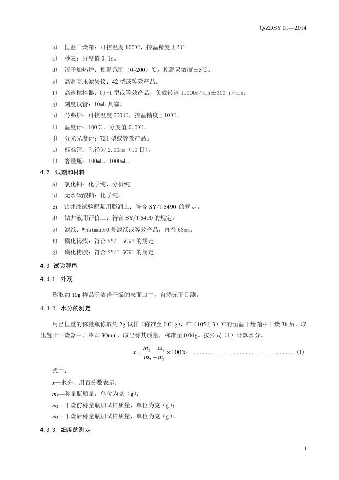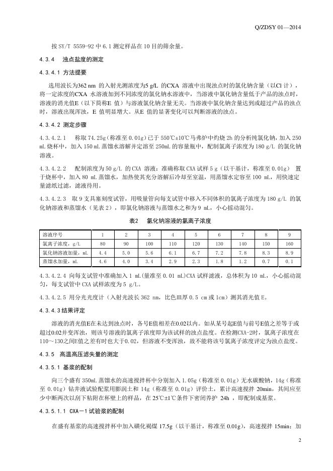 Q/ZDSY 01-2014 钻井液用降滤失剂羧甲基磺化酚醛树脂