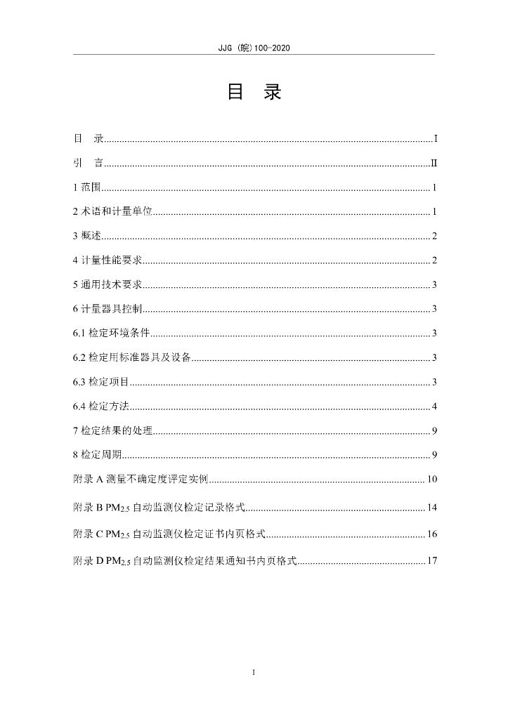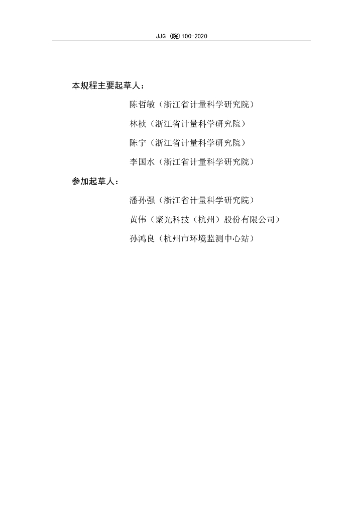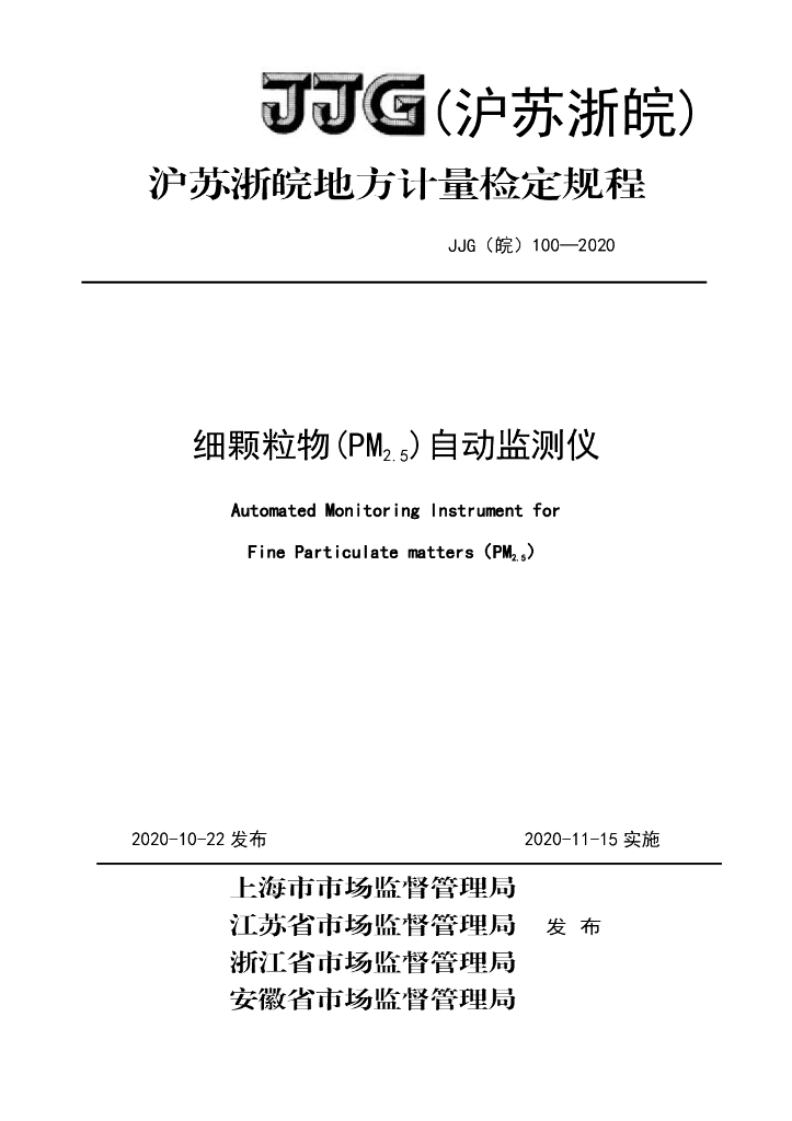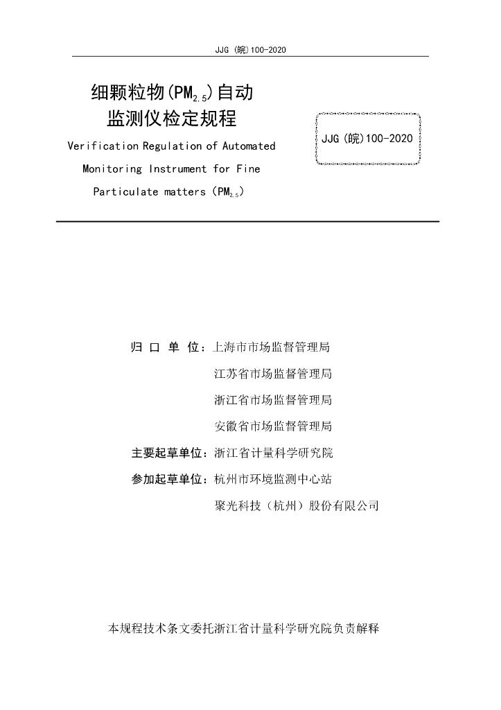 JJG(皖)100-2020 细颗粒物(PM2.5)自动监测仪检定规程