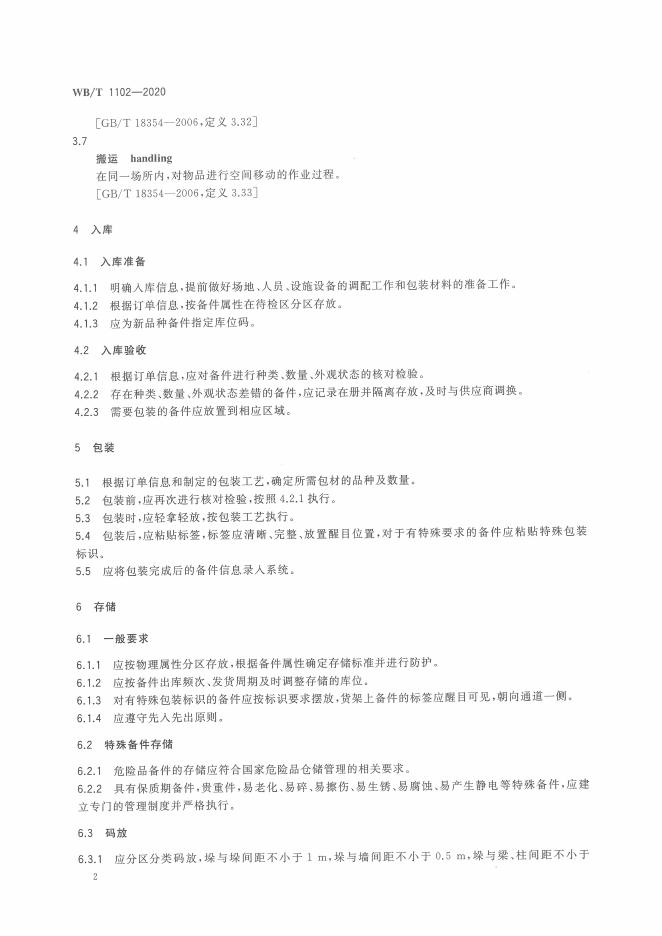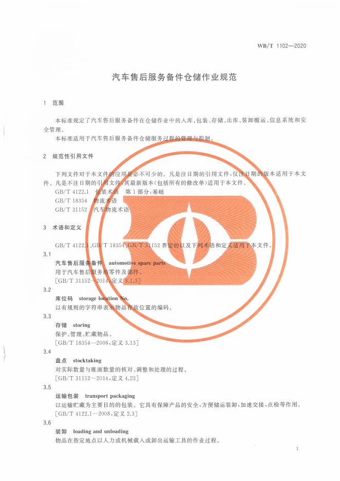WB/T 1102-2020 汽车售后服务备件仓储作业规范