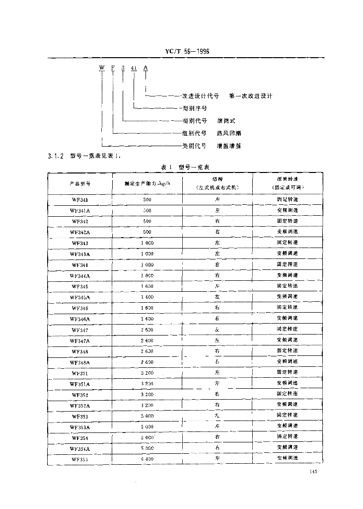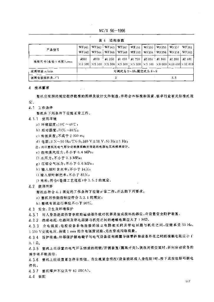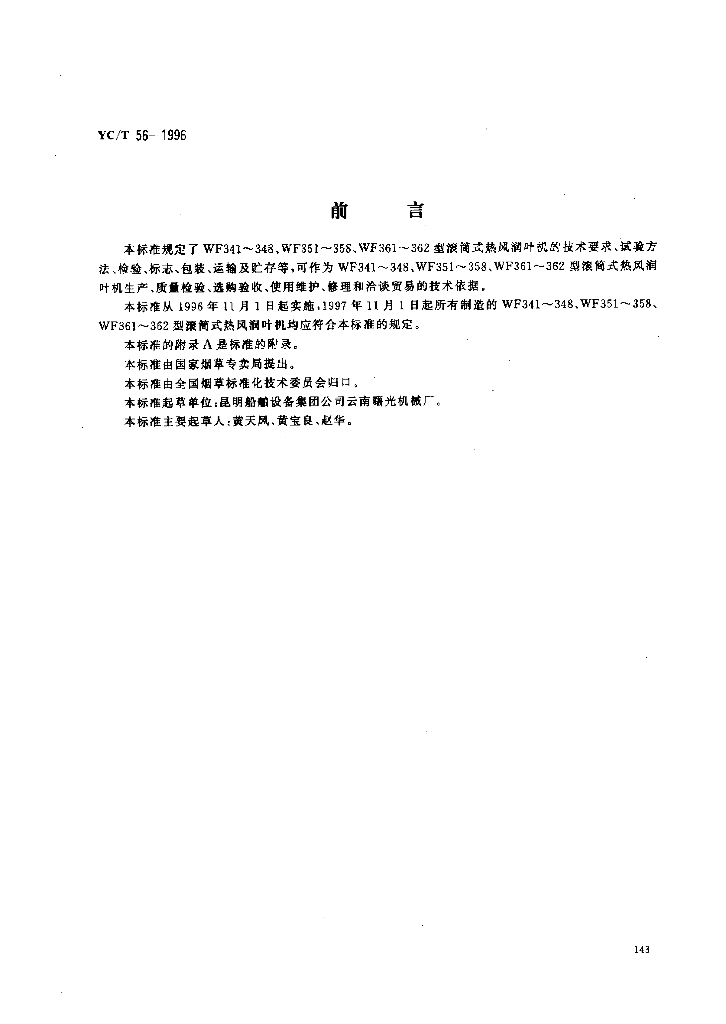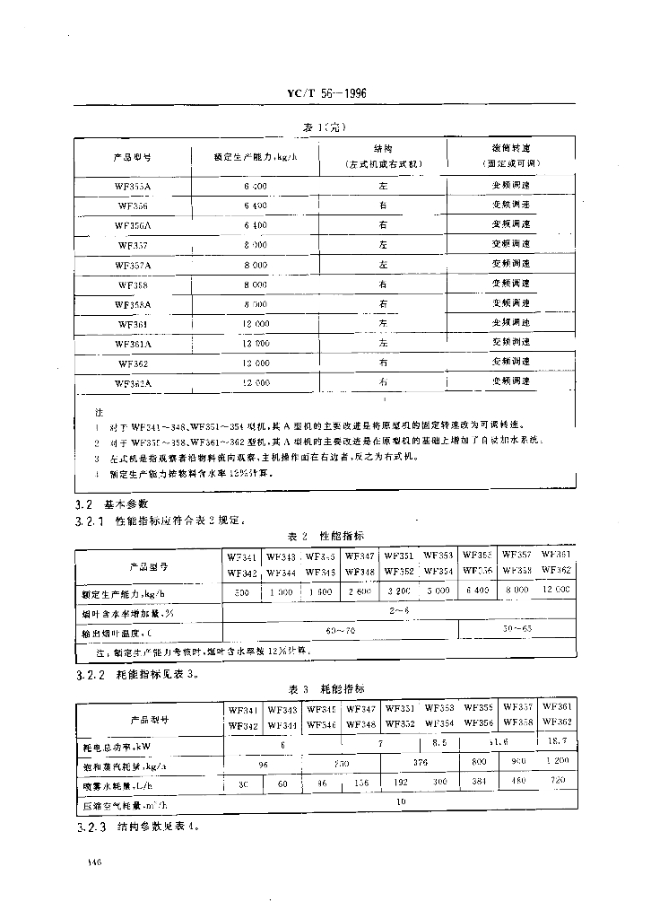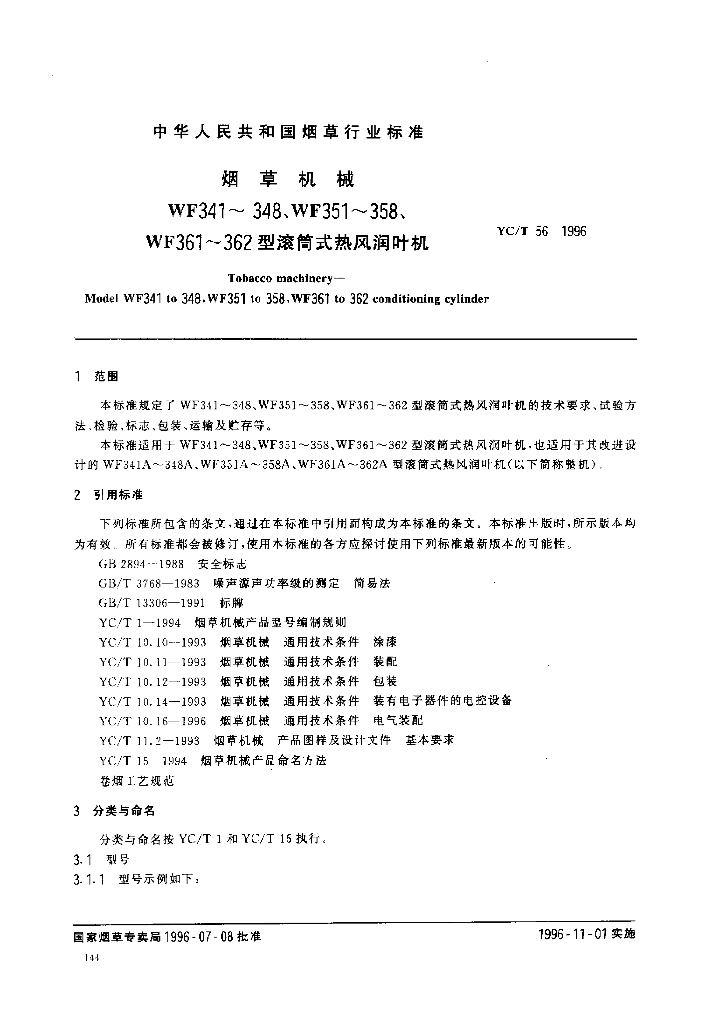 YC/T 56-1996 烟草机械WF341~348、WF351~358、WF361~362型滚筒式热风润叶机