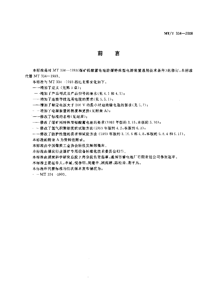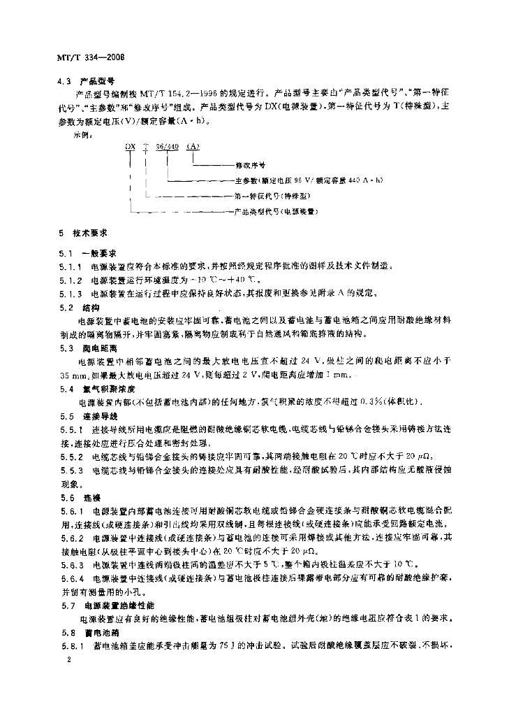 MT/T 334-2008 煤矿铅酸蓄电池防爆特殊型电源装置
