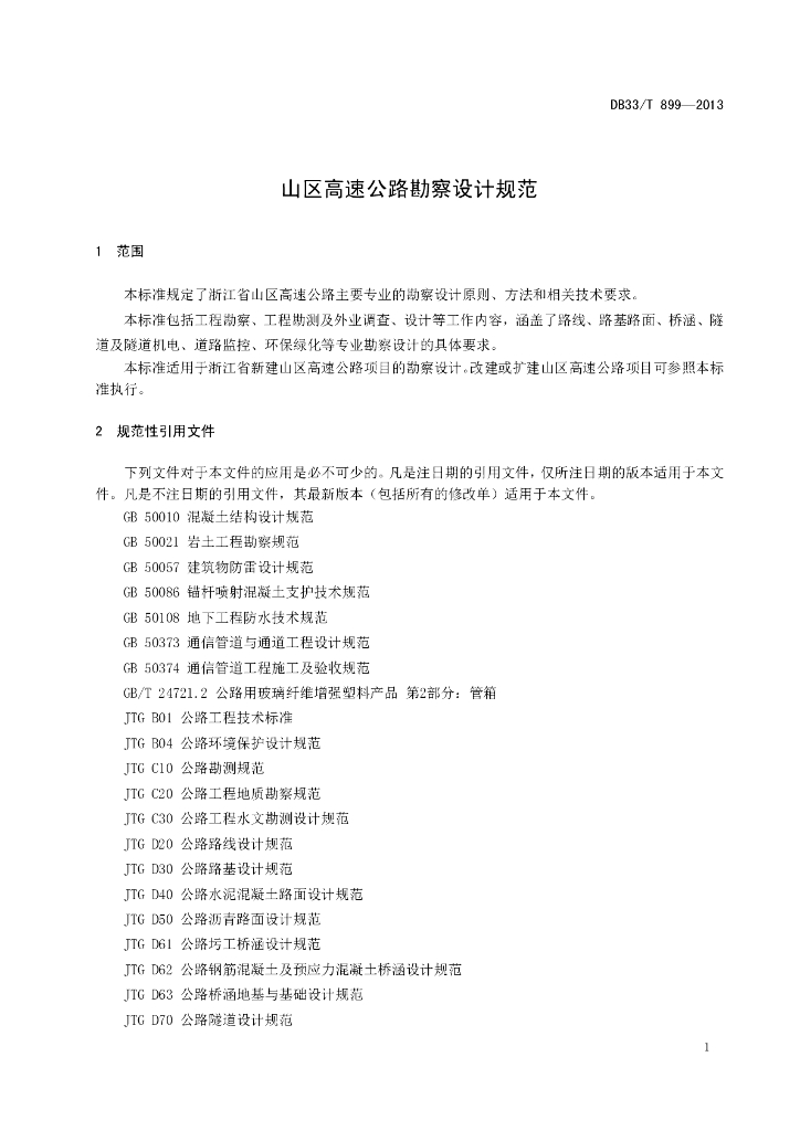 DB33/T 899-2013 山区高速公路勘察设计规范
