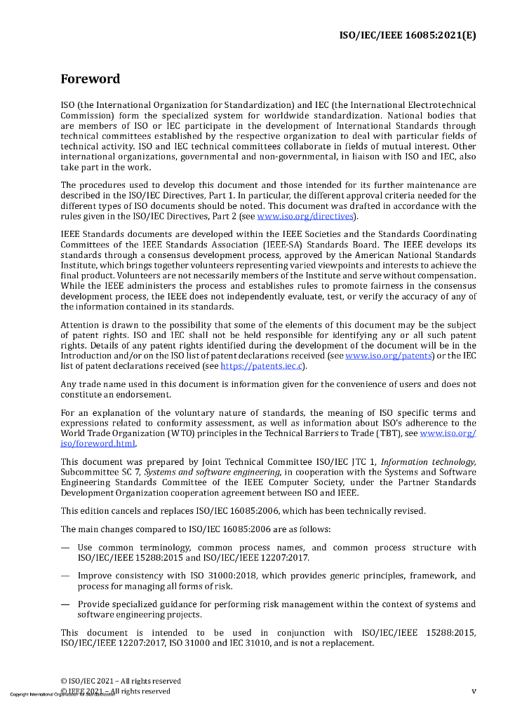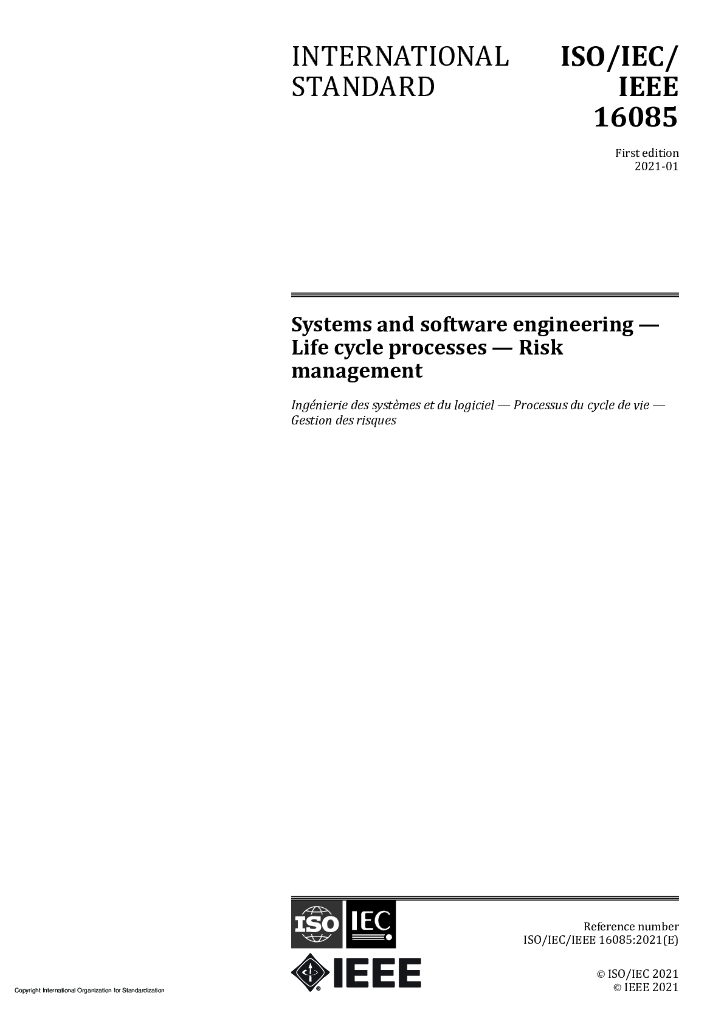 ISO/IEC/IEEE 16085-2021 系统和软件工程 生命周期过程 风险管理